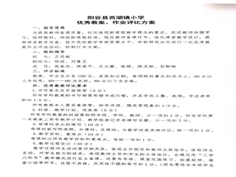 为加强教师间相互交流、相互学习,提升教师自身素质,提高教学质量,提升教学常规管理水平,11月29日,西湖镇小学语文学科进行备课、作业展示评比活动。 活动中,各年级组代表细致地翻阅老师们的备课和作业,并严格按照评比标准进行打分。 从检查与评比的情况来看,绝大多数老师的备课书写工整,都能依据课程标准和班级实际,紧扣教材特点,精心设计。老师们对作业的设计、批改都高度重视,同时注重学生良好作业习惯的培养,多数班级作业书写认真、工整、用笔统一、格式正确。各年级的特色作业更是吸引了评委们的目光,内容丰富的读书小报,思路清晰、图文并重的思维导图,设计巧妙、图文并茂的小连环画,既看出了设计作业老师的用心,也展示了学生们的创新思维和个性风采。 通过评委们客观地评价,各年级共推选出优秀奖六名。 通过本次备课、作业展示评比,教师们相互学习,取长补短,向着更好更优迈进! (图文来源:西湖镇小学 陈玉新 刘慧玉 文/图)(审核:曹鹏飞) 转载请按以下格式注明来源↓↓↓ 阳谷县教育和体育局“阳谷教育体育发布”(微信号:ygxjyhtyj)