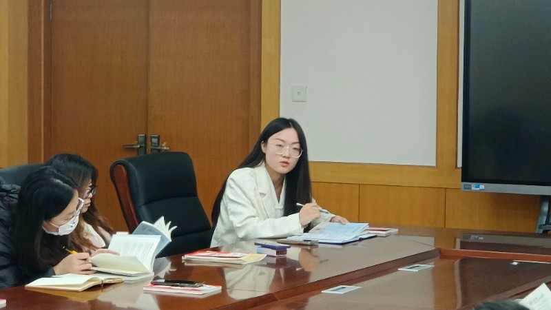 在张珂公布本期读书范围后,青年教师们屏息静气,埋首阅读,将自己沉浸在书香四溢的纸张中,并在稍后的分享交流环节中,就自己有所感触的语句或文段,结合自身教学管理实际,与大家进行交流。
