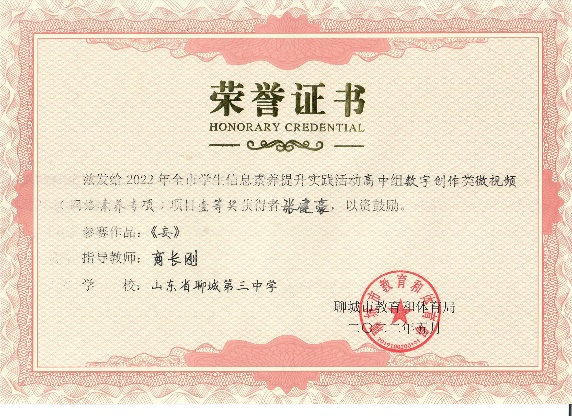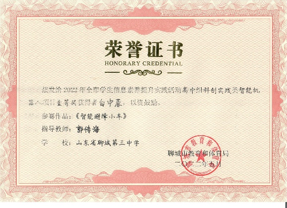 在聊城市教育体育局举办的第二十三届全市学生信息素养提升实践活动中,我校学子表现出色,共7人参加比赛,获得市一等奖 4名,市二等奖 3名。