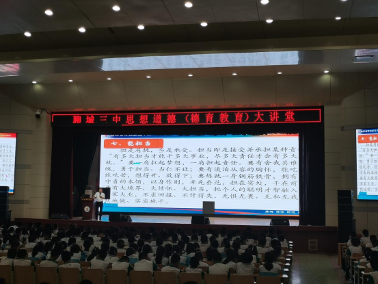 育人的根本在于立德。为了落实习近平总书记对新时代中学生提出的德育要求,引领学生学习落实社会主义核心价值观,聊城三中新校组织开展了德育教育大讲堂,大会由聊城三中新校学生发展中心主任陈金成主讲。