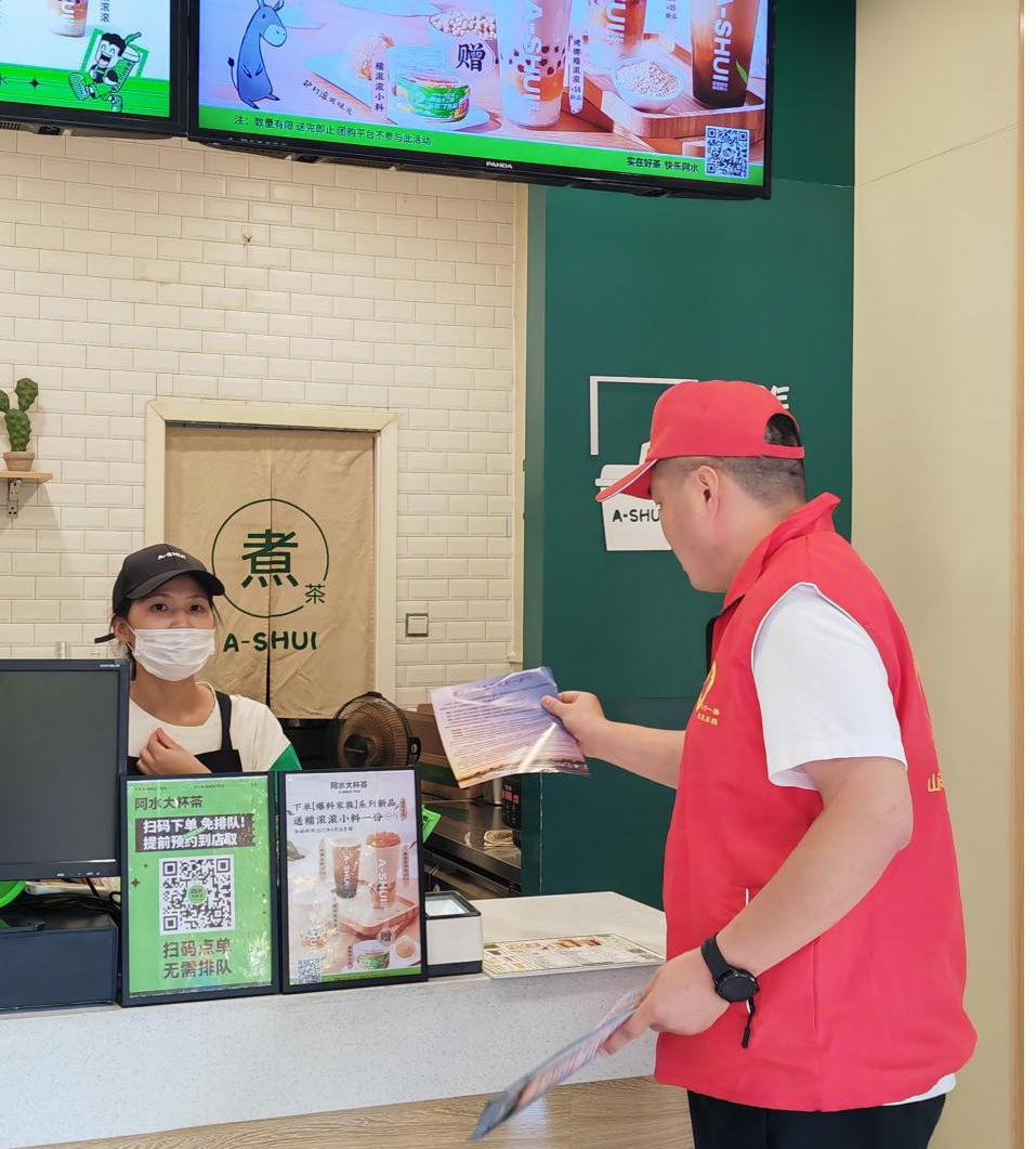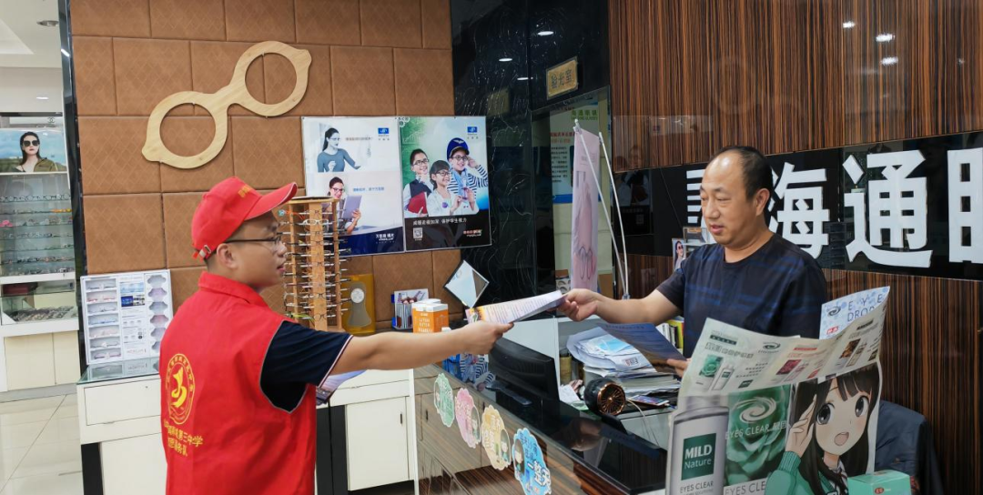 志愿者们向商铺、居民发放创城宣传单