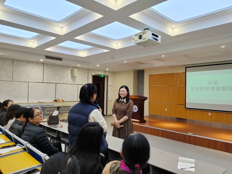 讲座一开始,刘绍立询问家长与青春期孩子沟通中存在哪些困惑。这个话题在家长们之间产生了很高的讨论度,在听完几位家长讲述的事例后,刘绍立结合自己手中了解的更多咨询案例,提出与青春期孩子沟通的四个步骤,随后并结合自身经历对具体操作进行了引导与解释,其中在青春期孩子的特点、家庭教育的内在逻辑关系和孩子的外在表现背后的内在需求等方面做了详细的重点说明。对于家长们比较关心的孩子学习问题,刘绍立在讲座中结合学生情况介绍了马斯洛需求层次理论,由此进一步指出影响学习效果的几点因素,并进行一一阐释。她表示,在对待孩子玩手机这件事上,要关注孩子行为背后的正向需求,毕竟手机本身并不是“洪水猛兽”,但如果我们处理问题的态度很糟糕,才是亲子关系与孩子成长过程中真正的“洪水猛兽”。经过大家的热切讨论,家长们纷纷感慨,教育孩子并不是一件随随便便的事,更不是一项可以放任家长发泄自身情绪的任务,陪伴孩子要有足够的爱和尊重,要带有善意,真正明白自己身为家长所希望得到的是一时的口舌之快还是孩子长远的成长。