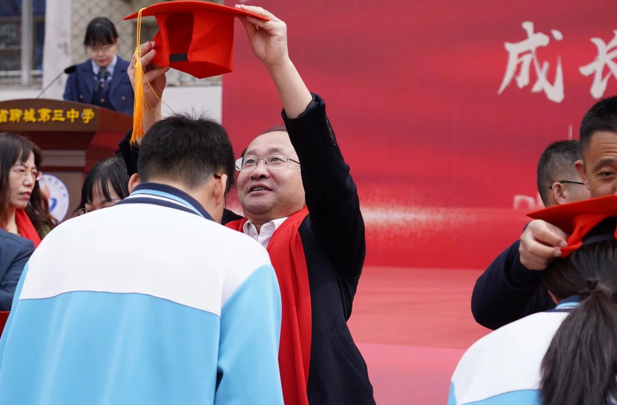 十八而至,逐梦青春。聊城三中校长王永辉向即将迈入成人行列的同学们表示热烈祝贺,并围绕“成长·感恩·家国·使命”对同学们发出殷切期盼。在这庄严神圣的时刻,他勉励同学们先成人,后成才,要积极主动为人生负责,担责于心,负责于行;常怀感恩之心,饮水思源,向上向善,学会付出,学会给予,在下雨时努力为别人撑一把伞;要心怀家国,青年一代要有理想,有担当,为国家前途命运奉献自己的力量。