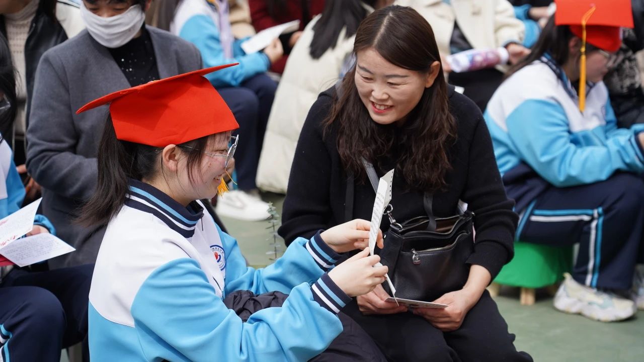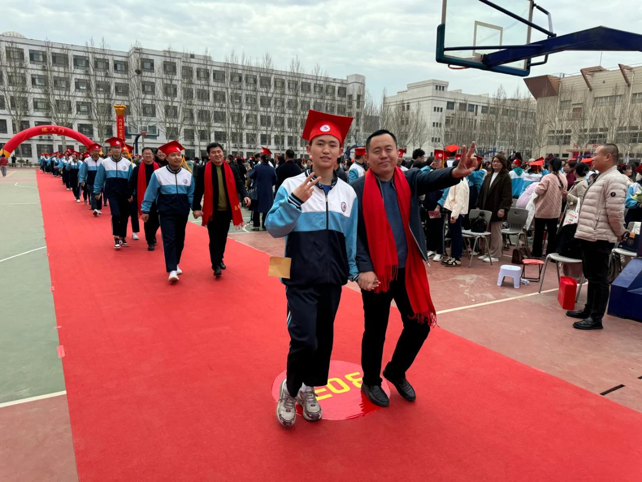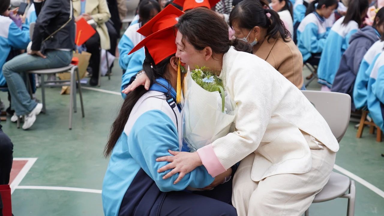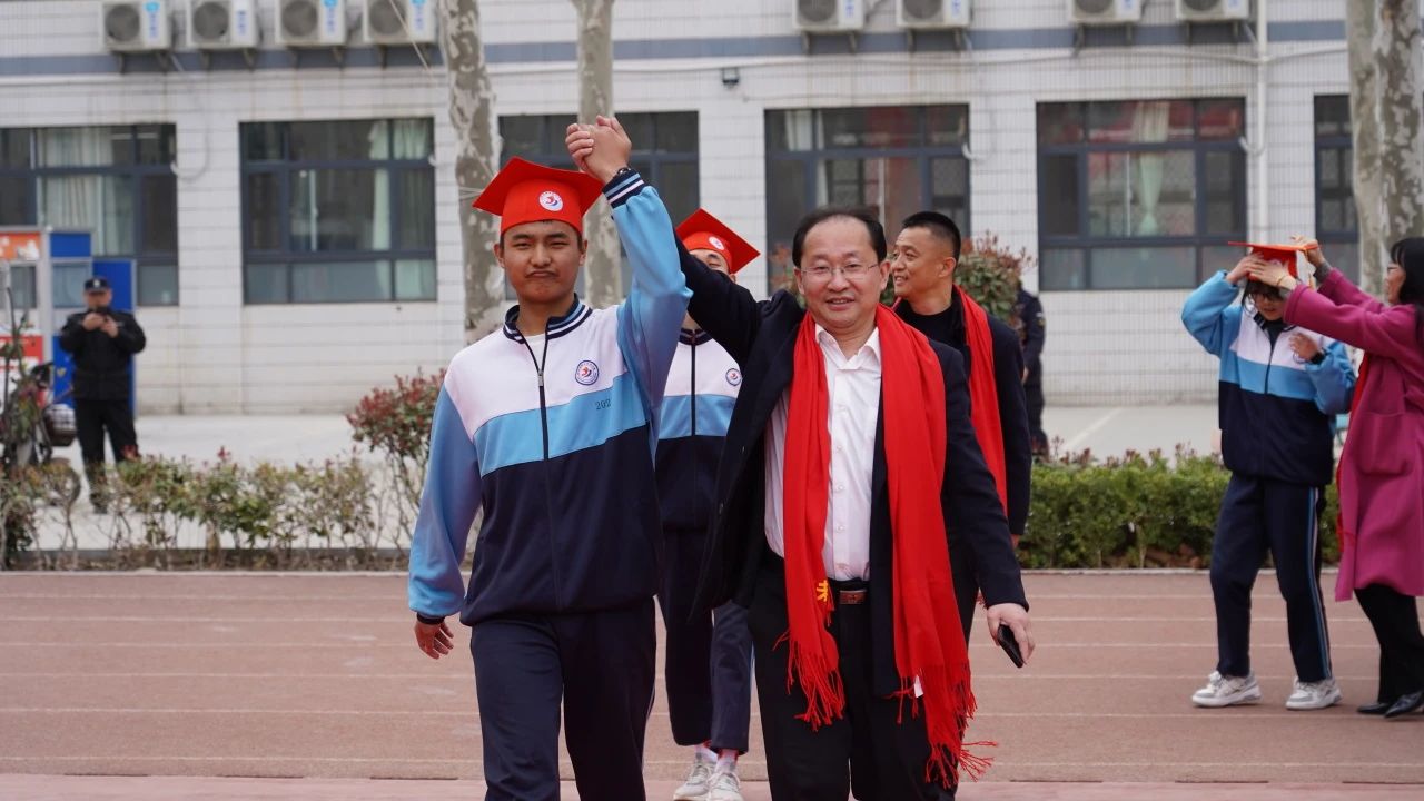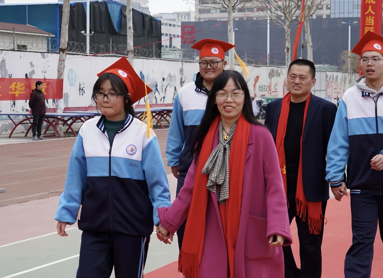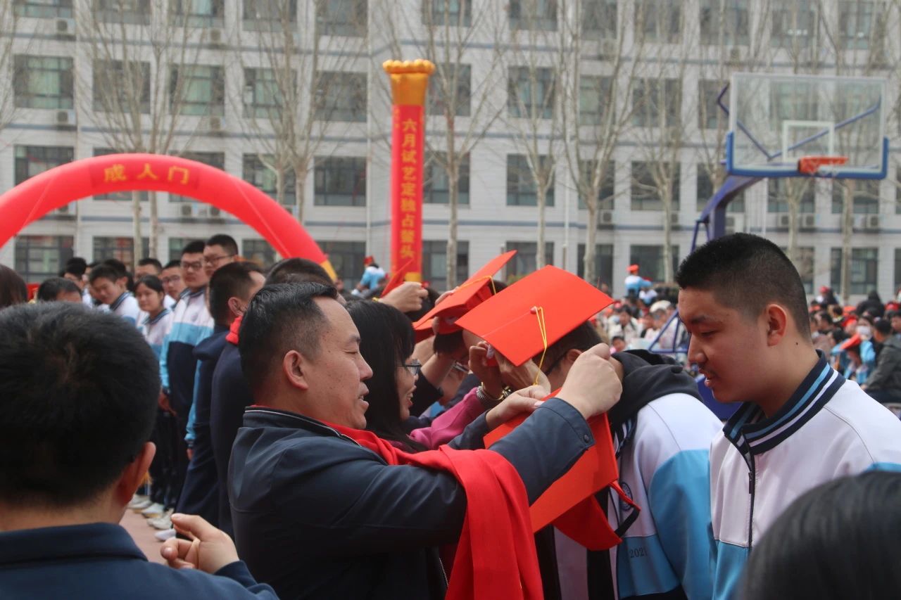 同学们与父母一起手牵手,在老师的护航下,带着梦想与希望,带着嘱托与鼓励,带着责任与担当,昂扬跨过“成人门”,通向“圆梦门”。这一步跨越,是开启新征程的代表,是迈向新未来的象征。