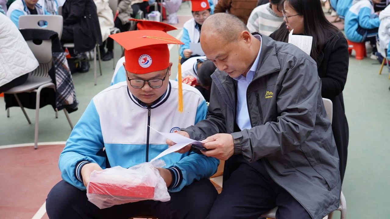 高三2班龚信达同学的父亲代表全体家长向学校表达了真挚的谢意,同时对孩子们送出了最真诚的祝福:祝贺你们跨入人生新的、更美好的阶段!18岁之后的你们,将要学会独立,并主动承担风雨。在未来的日子里,希望孩子们坚定理想信念,勇于拼搏奋斗,以一颗阳光、乐观的心面对未来!