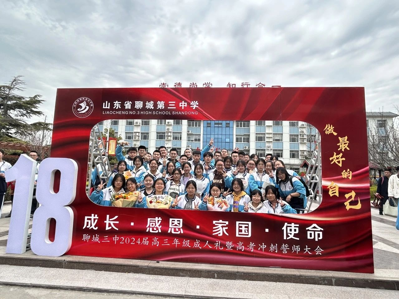 2024年3月23日上午,聊城三中“成长·感恩·家国·使命”2024届高三年级成人礼暨高考冲刺誓师大会顺利举办。聊城三中学校党委副书记、校长王永辉,副校长许生勇,校长助理刘艳红、刘习锋,学生发展中心主任程小全出席会议。会议由高三年级刘粟老师主持,2024届高三全体师生和家长共同参与。