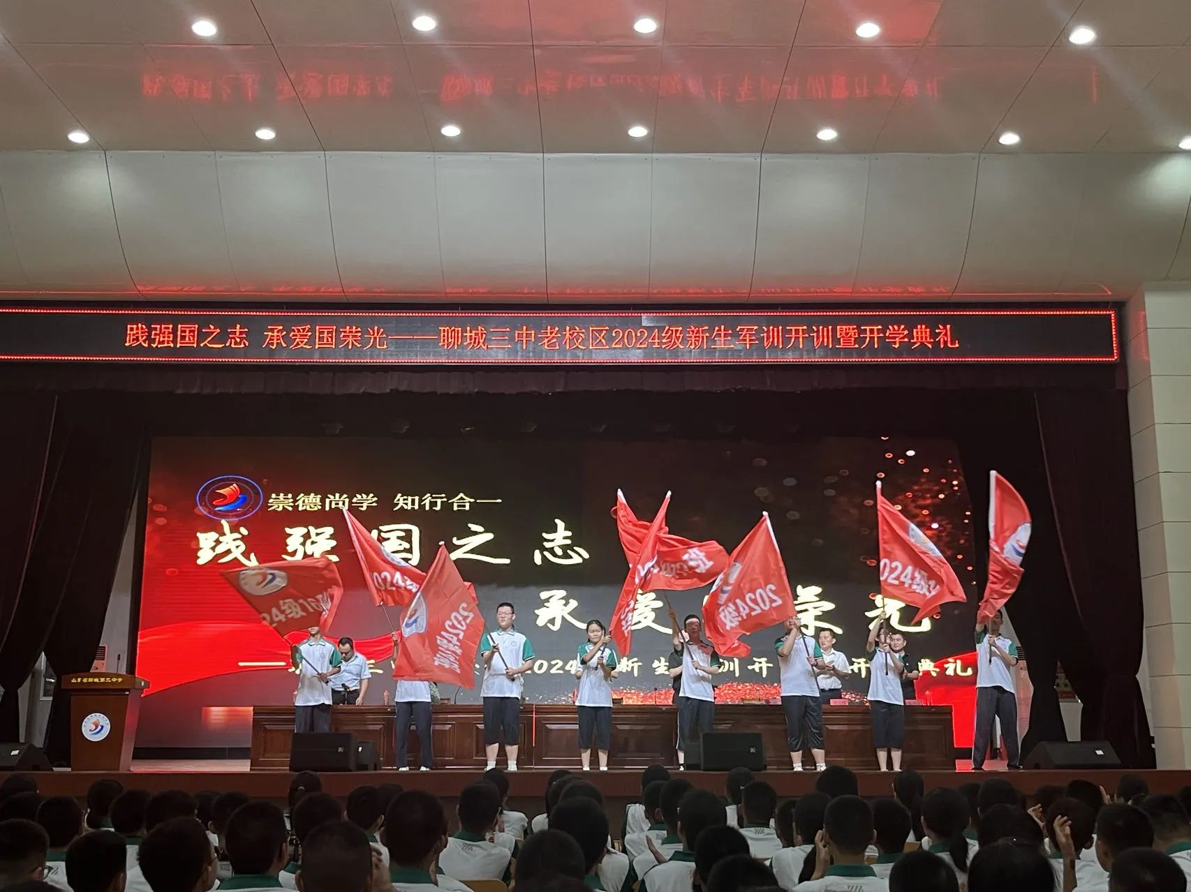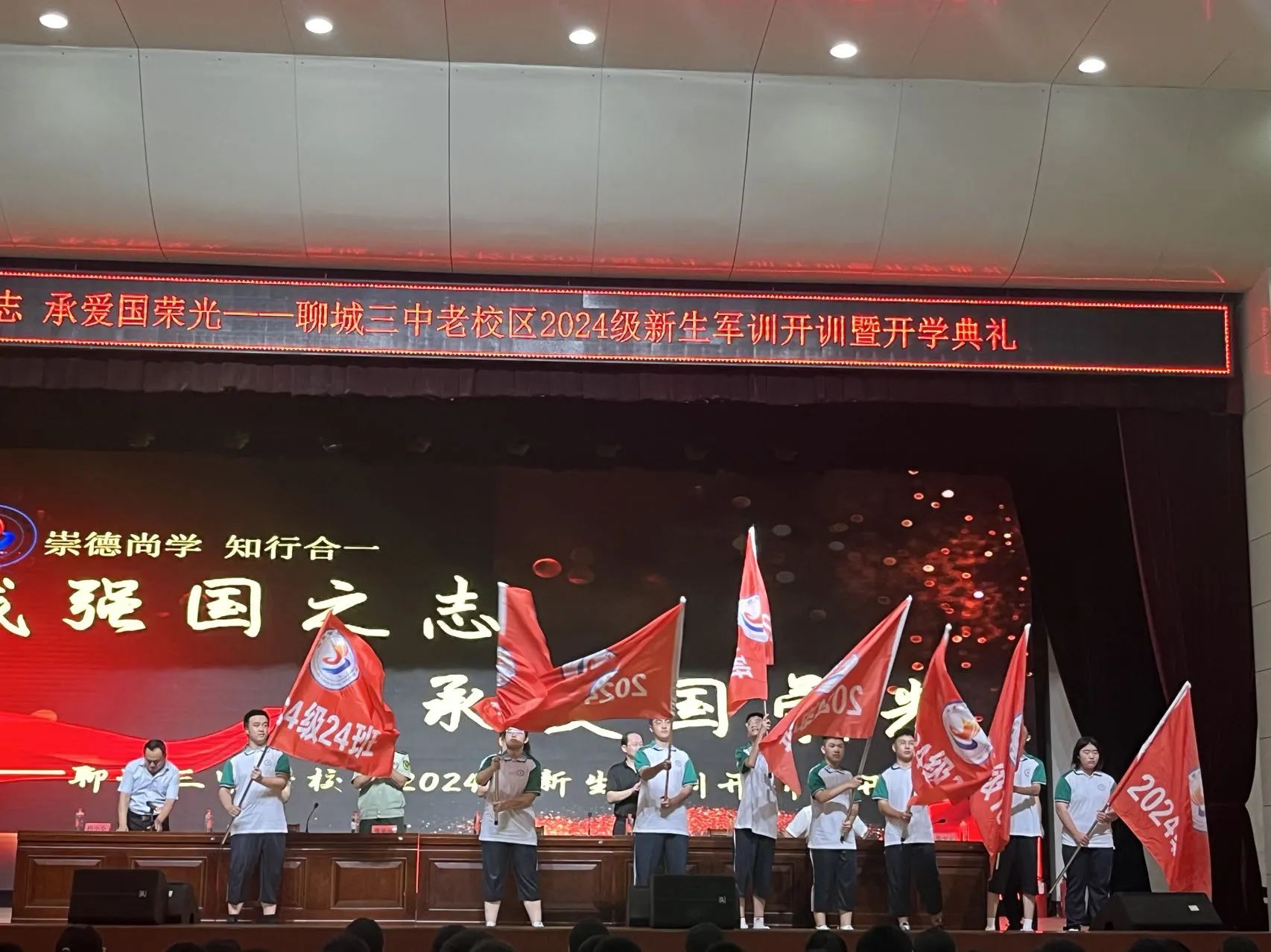 8月23日,聊城三中老校区2024级新生军训开训暨开学典礼在大礼堂隆重举行。聊城三中党委书记国怀志,聊城三中党委副书记、校长王永辉,武警聊城支队副支队长张来囤,聊城市教体局体卫艺科刘彬,聊城三中副校长刘艳红、刘习锋,聊城三中团委书记张中正出席典礼,开训典礼由学生发展中心主任程小全主持。