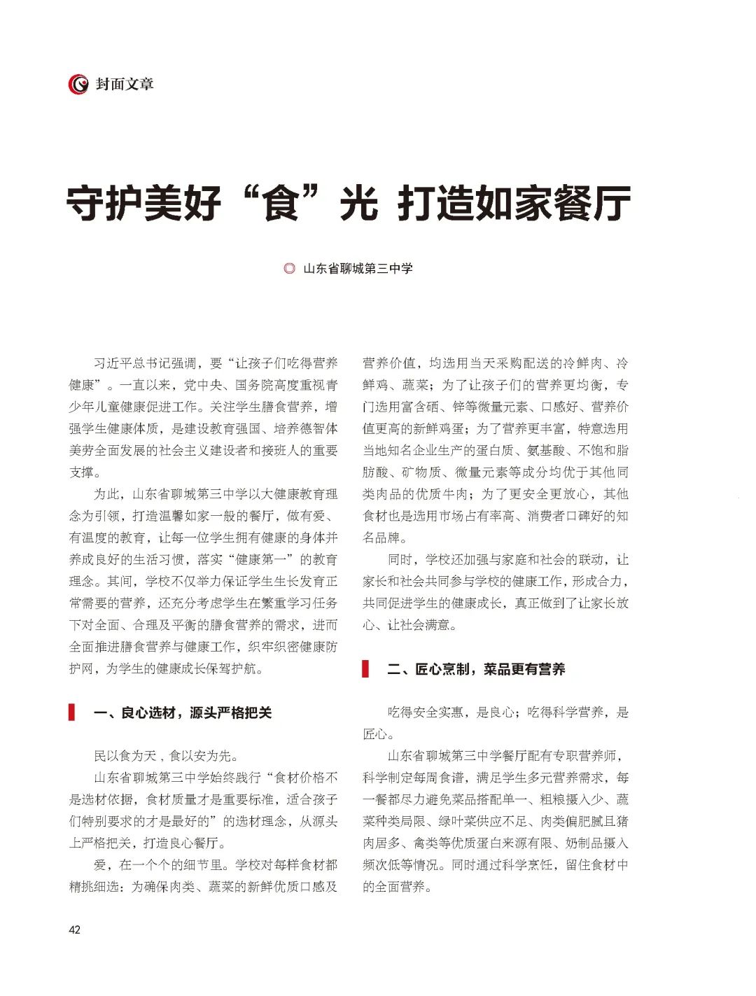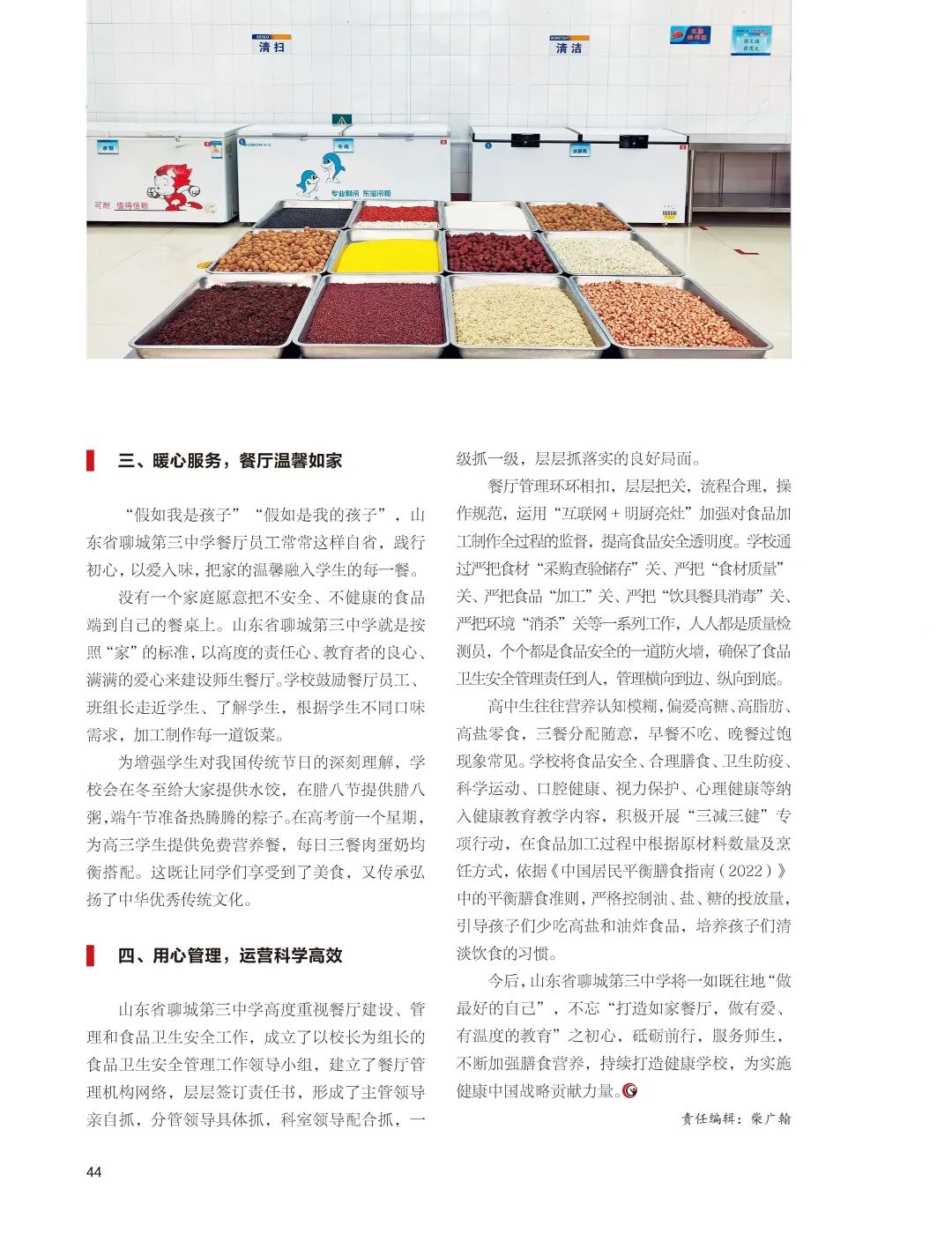 此次荣登《健康中国观察》杂志,进一步展现了我校“明厨亮灶 如家餐厅”的亮点品牌形象,是对我校餐厅管理工作的充分肯定,也是我校在提升人文关怀、推动学生健康成长、全面推进健康学校建设方面所取得的重要成果!