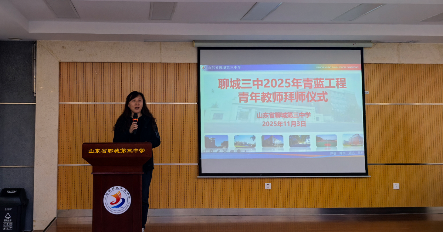 为培育适应新时代教育要求、素养过硬的青年教师力量,11月3日,聊城三中新校区教学教研中心在3号教学楼106会议室举行2025年“青蓝工程”暨青年教师拜师活动。活动由德育安全中心教师张辛茹主持。