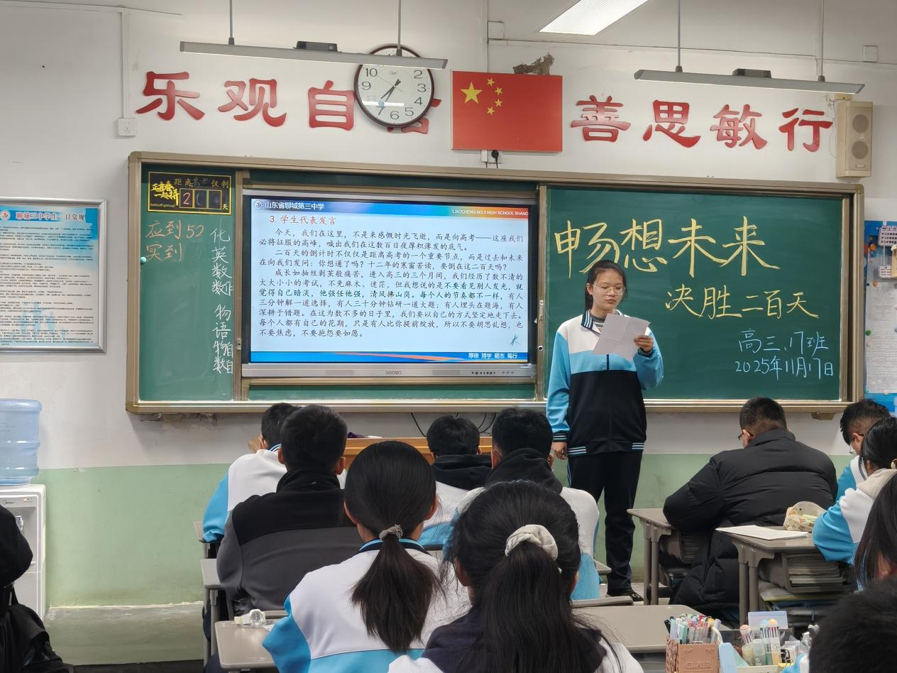 学生代表们的发言更是精彩纷呈,充分展现了高三学子的精神风貌。有的慷慨激昂地立下奋斗誓言,有的真诚分享自己的心路历程,有的细致阐述接下来的学习计划。他们共同表达了一个心声:“我们的梦想,就在这200天踏实坚定的每一步里!”