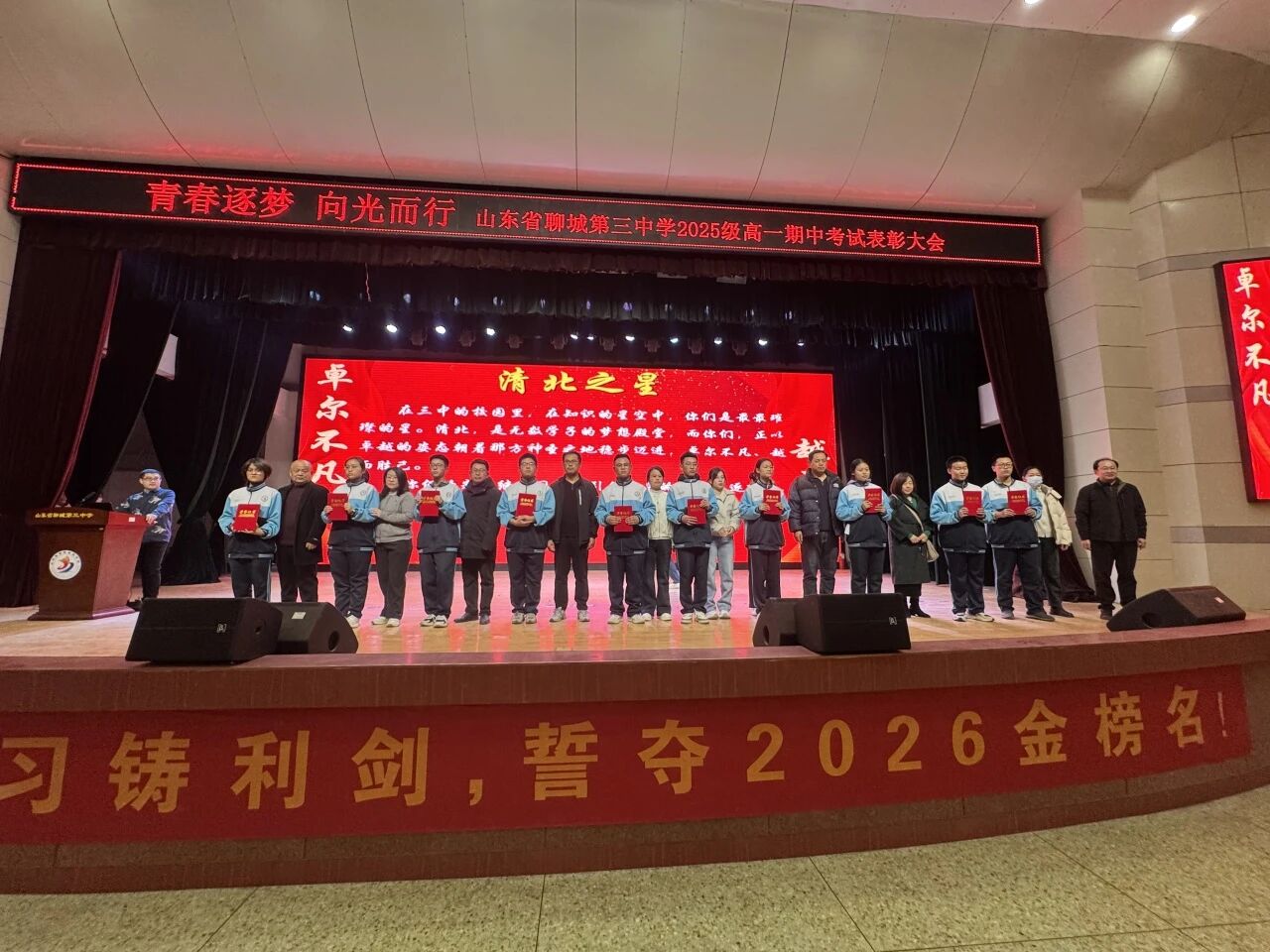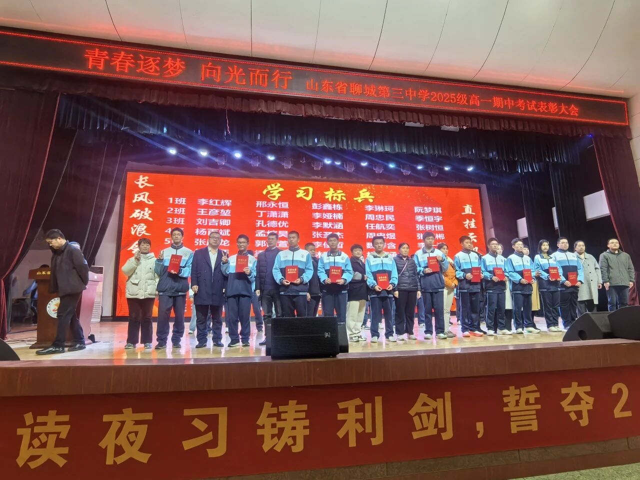 岁暮天寒,初心如炬;家校同心,共育新苗。此次表彰大会既是先进风采的集中展现,更是精神力量的深情传递。它以榜样为灯,照亮“志存高远、脚踏实地”的逐梦之路;以箴言为泉,滋养“勤学善思、笃行实干”的成长之壤;以家校协同为翼,托举“厚德博学、砺志笃行”的青春之航。愿聊城三中学子承此盛会之韵,携榜样之力、沐师长之诲,在青春赛道上勇毅驰骋,于人生长途中书写无愧于时代、不负韶华的璀璨华章!