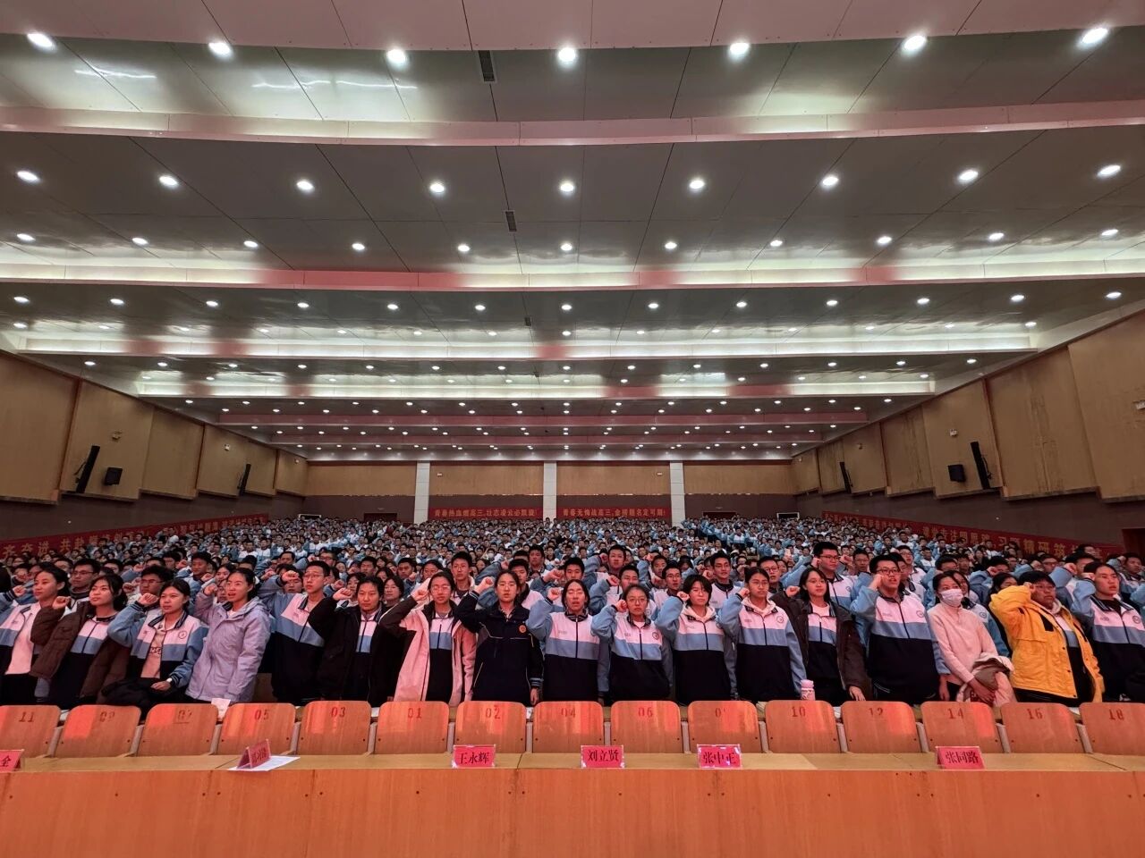 大会尾声,全体学子起立宣誓,誓言嘹亮震场:“我是三中的学子,以青春名义宣誓:感恩教诲,不负期盼;以榜样为灯,笃学不倦;以奋斗为笔,书写华章。严守纪律,脚踏实地,不负韶华,向光而行;誓以初心赴征程,誓以拼搏铸辉煌!”铿锵誓词里,不仅藏着三中学子对成长的郑重承诺,更将整场大会的奋进氛围推向顶点,让向上的力量在每一位师生心中扎根生长。