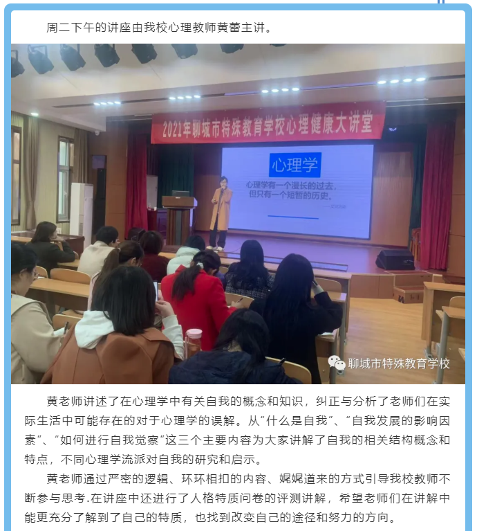 缓解压力,觉察自我——市特校举行“心理健康教育大讲堂”系列讲座