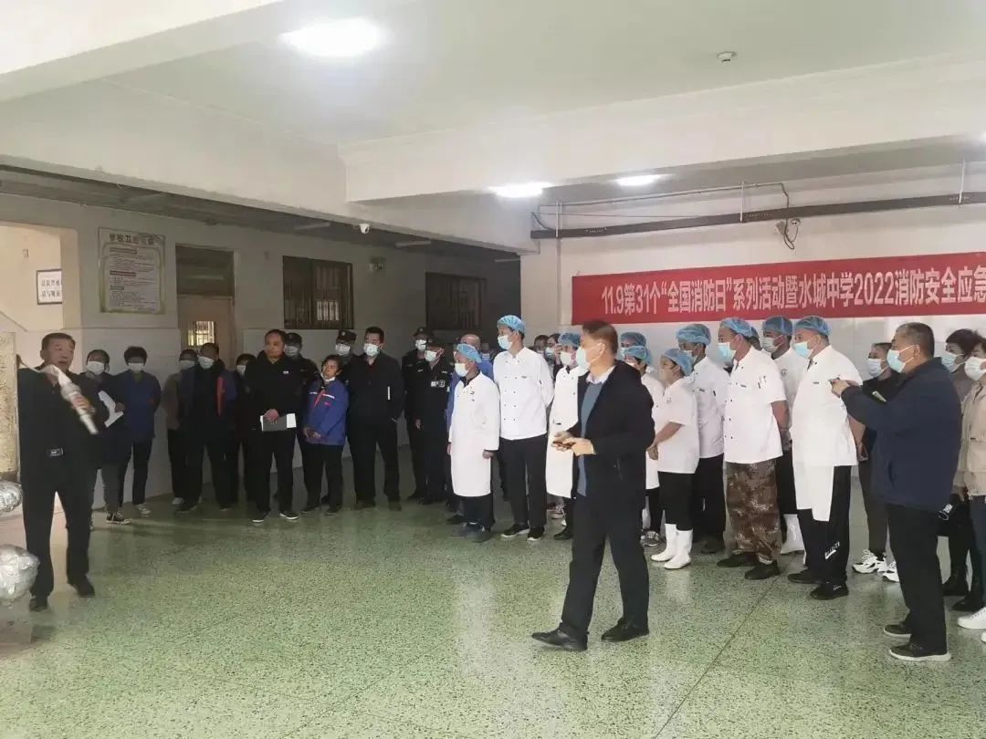 为认真学习贯彻党的二十大精神,深刻领会习近平总书记关于安全生产、防灾减灾救灾等应急管理工作的重要论述。根据《全市教体系统2022年“119” 消防宣传月活动实施方案》的通知,水城中学于11月8日举行了“消防安全宣传月”启动仪式暨员工消防安全知识培训和演练活动。