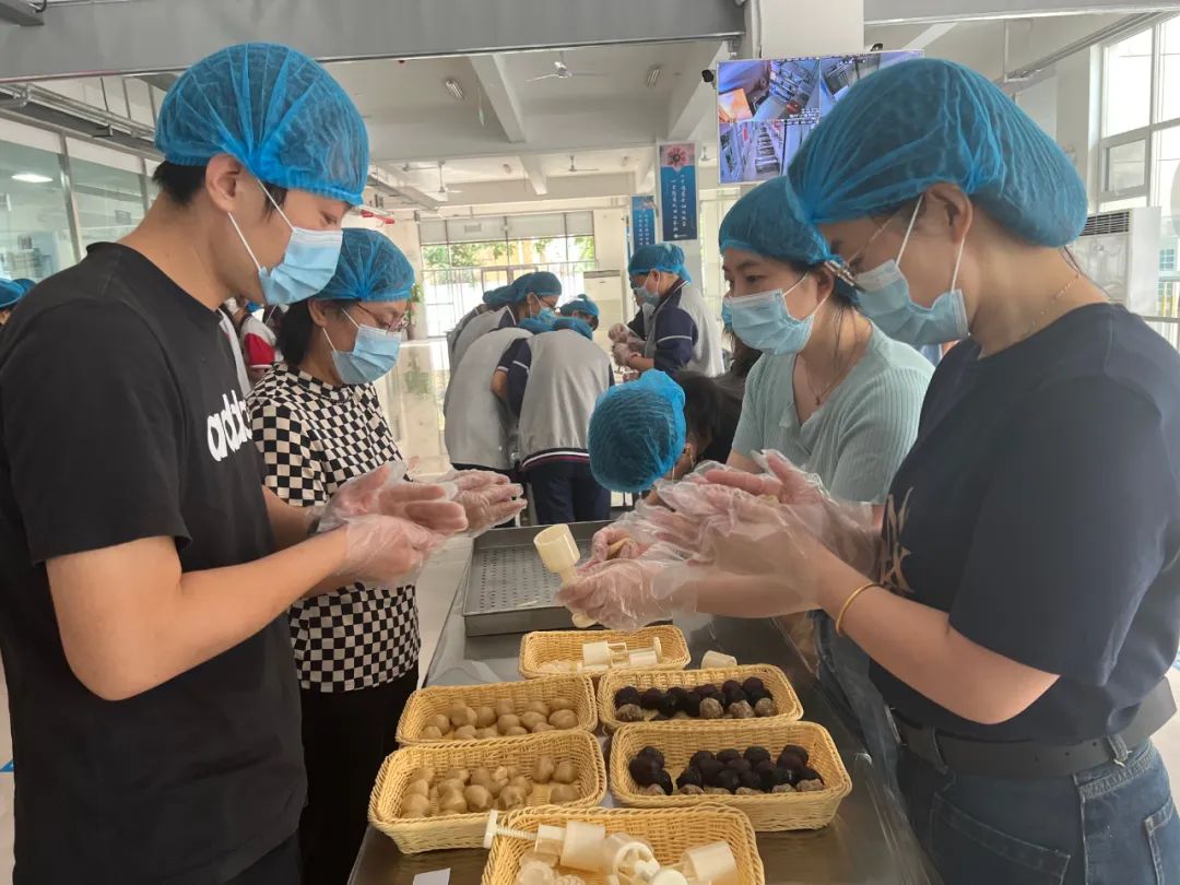 生活科王言民科长带领员工在活动前一晚提前准备好了食材,确保活动的顺利圆满完成。活动伊始,在营养师王宗健老师的指导下,参加活动的全体师生认真学习了制作月饼的步骤和食材的搭配,掌握了制作月饼的操作流程,大家揉面团、擀面皮、选馅料、包馅料、定型……老师和同学们忙的不亦乐乎,一起体验制作的乐趣,大家亲手制作的月饼可带回与家人朋友一起品尝,师生们纷纷表示活动温馨又有意义,希望以后多多举办类似的活动。