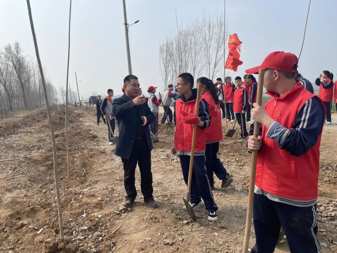 为深入贯彻习近平总书记生态文明思想,发挥团组织的先锋模范带头作用,从青年一代树牢“绿水青山就是金山银山”的理念,2023年3月21日,迎着朝阳,聊城市水城中学团委组织学校41名青少年志愿者开展了义务植树活动,用实际行动共护美丽绿色家园。