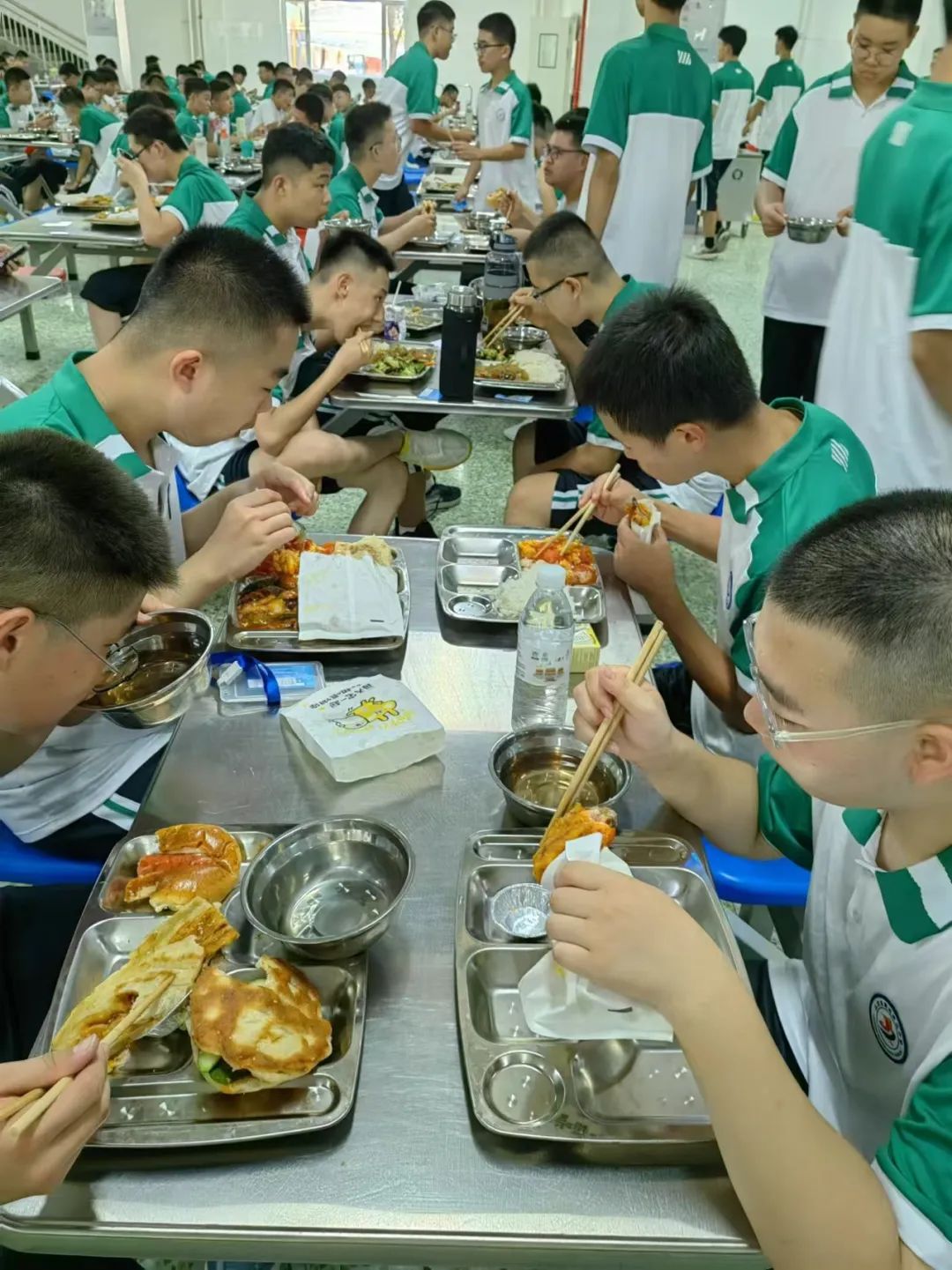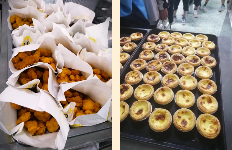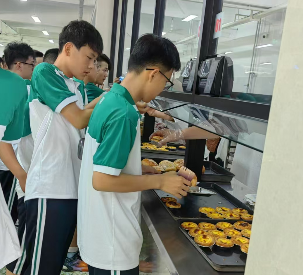 要安全,他们每天每锅菜都要留样备检;要饱腹,他们打饭满满一碗从不吝啬;要营养,他们精心熬制各式汤、粥、稀饭来搭配肉菜均衡的出品;要丰富,多口味学生奶敞开喝,新鲜蛋吃多少管够、手作面包样式不定期更新,喜欢哪个窗口就去哪个窗口,喜欢吃什么就买什么。对于正爱吃甜、爱吃肉的年纪来说,蛋挞、鸡腿、糖醋里脊等等更是大热抢手。更棒的还在后面:若赶上逢年过节,什么饺子汤圆粽子一样不落——家里会做的,这儿会更多!