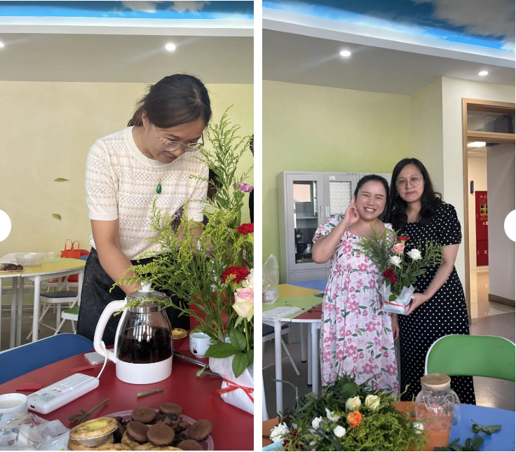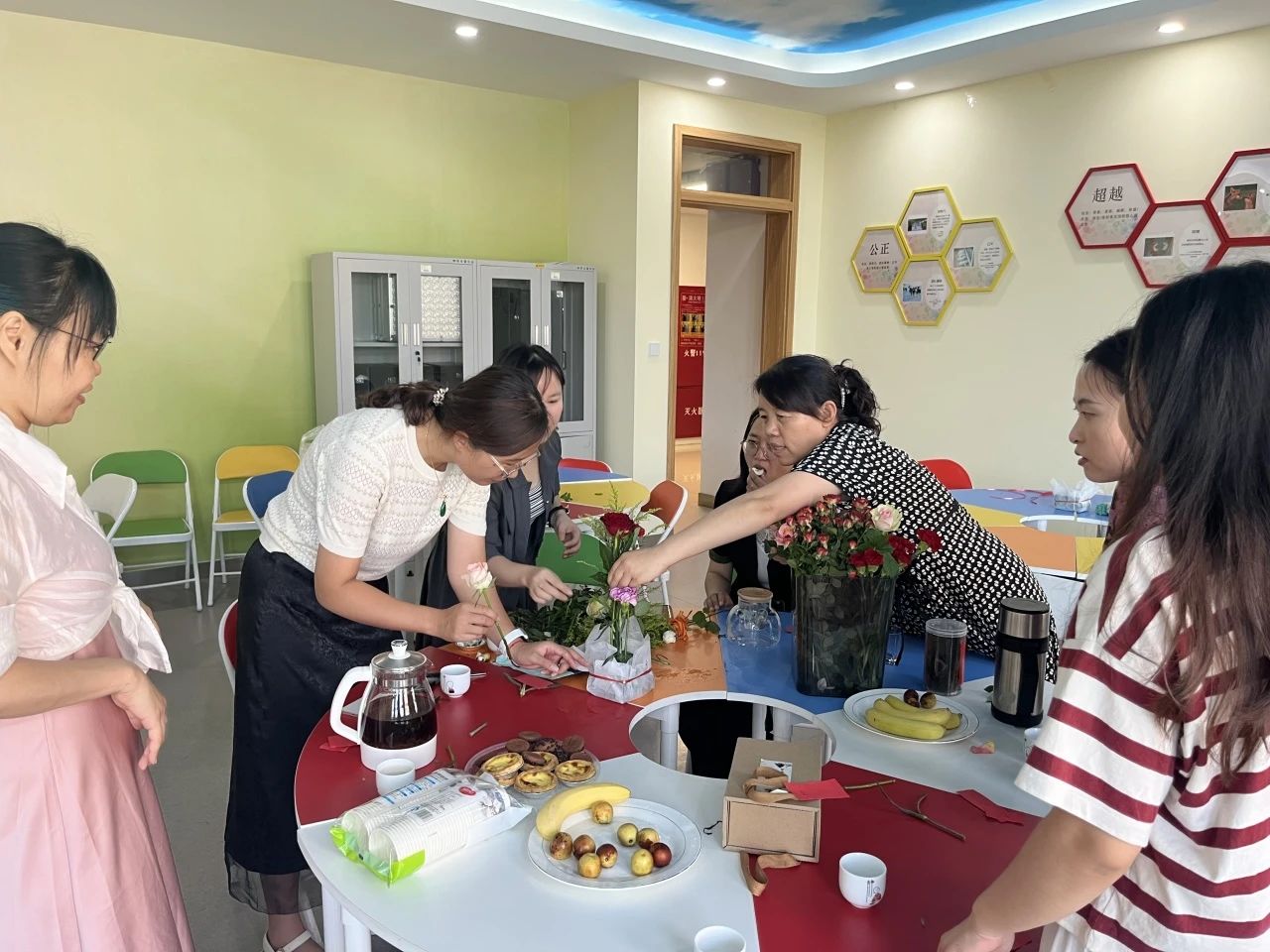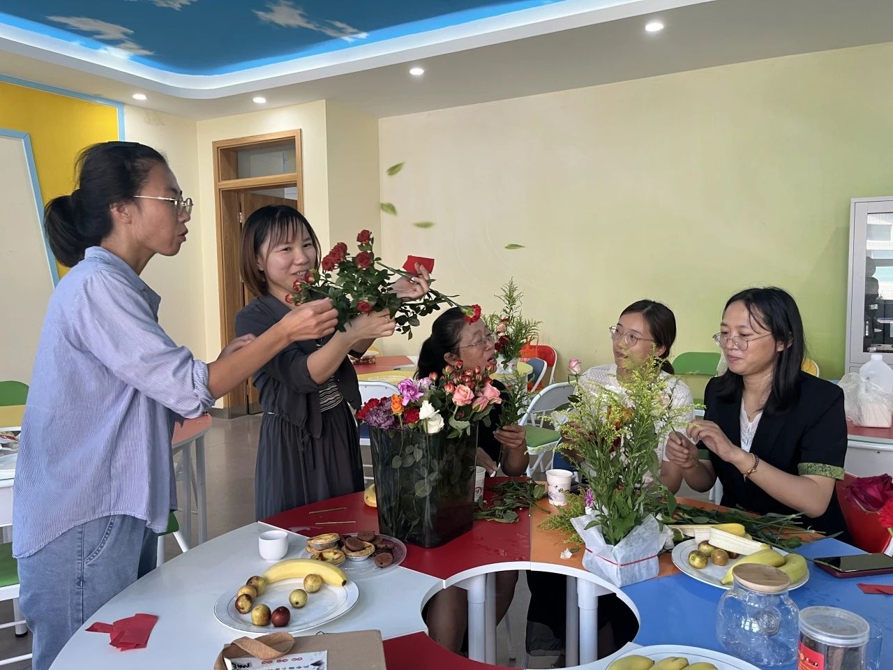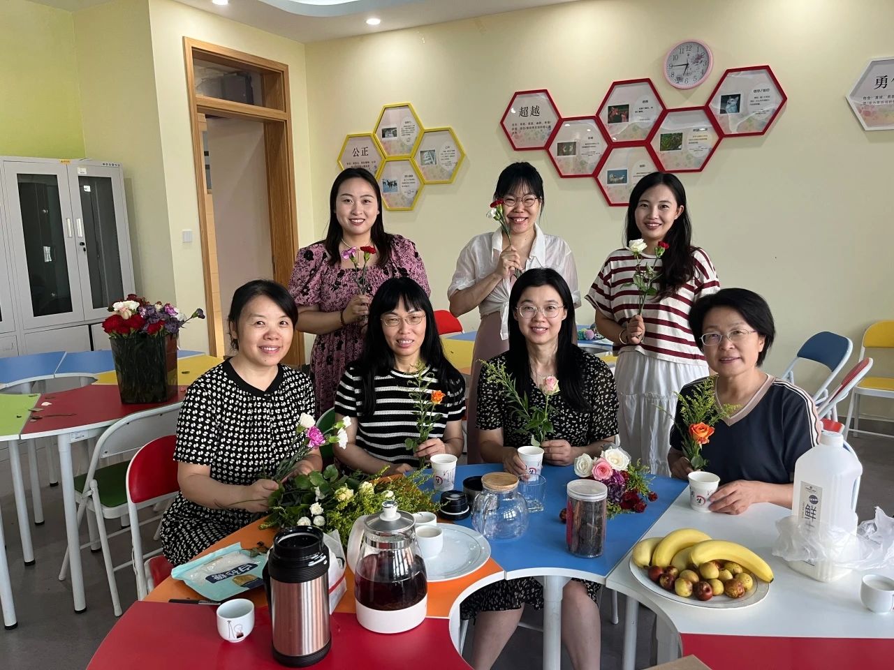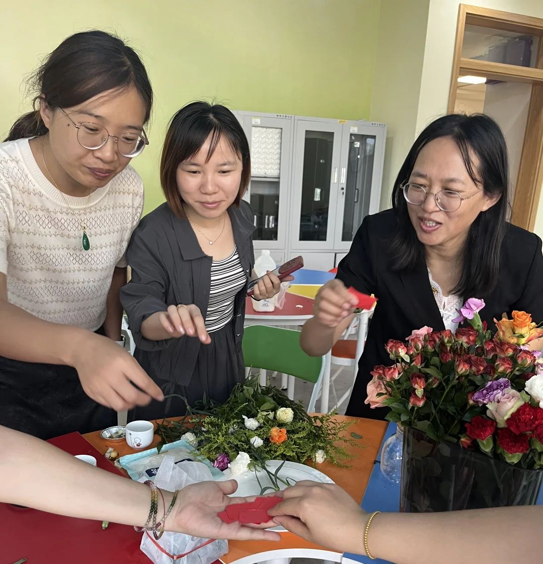 活动现场,花香四溢,欢声笑语不断。大家协同合作,巧妙搭配,一朵朵鲜花在老师们的巧手下变得错落有致。教师们在享受插花乐趣的同时,也增进了彼此之间的交流和感情,在紧张的工作之余,得到了一次难得的放松和心灵的滋养。