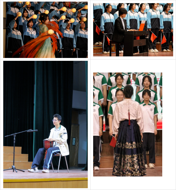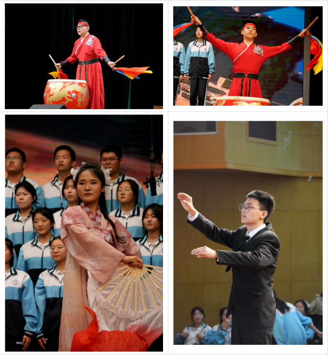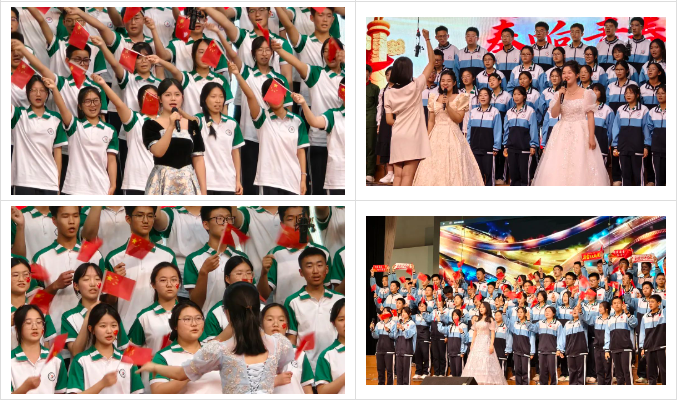 此外,还有的班级独具匠心,创新设计了队列组合和表演形式,部分班级还加入了舞蹈、朗诵甚至表演等多种元素,为合唱增添了色彩与活力。