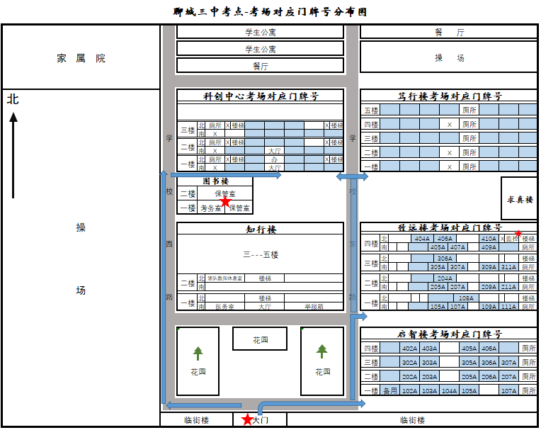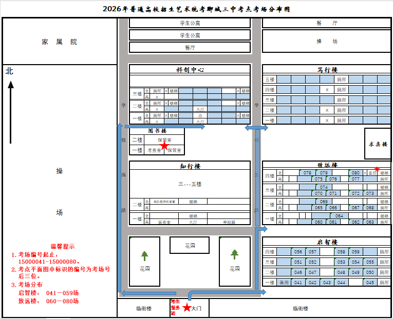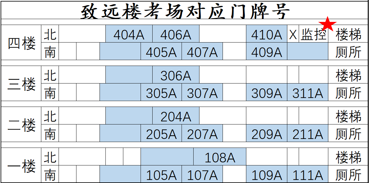请考生仔细查看考场分布图,考场在启智楼、致远楼,进大门右拐后向北走。