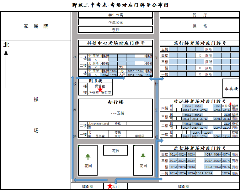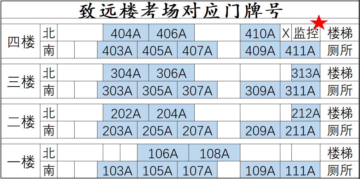 请考生仔细查看考场分布图,考场在启智楼、致远楼、科创中心,进大门右拐后向北走。