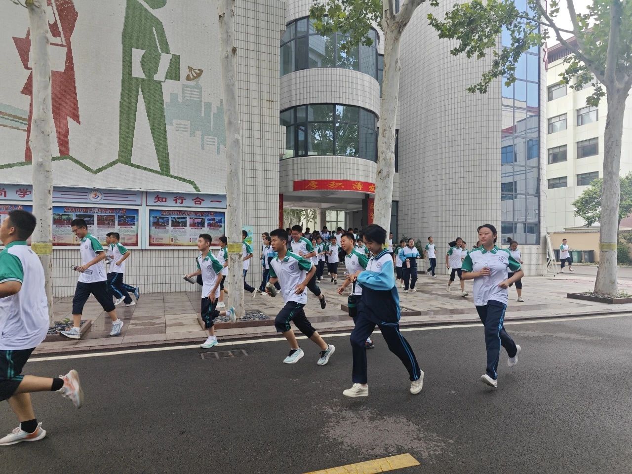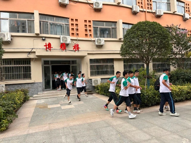 为帮助刚步入高中校园的新生快速熟悉安全应急流程,8月28日,应急疏散演练接力展开。当疏散信号发出后,各班新生在班主任的指挥下,迅速从教室有序撤离。大家严格按照疏散路线,不推挤、不慌张,沿着教学楼楼梯快速下楼,整个疏散过程有条不紊,展现了同学们高度的组织纪律性和自我保护意识。老师们维持秩序,确保每位同学安全撤离。