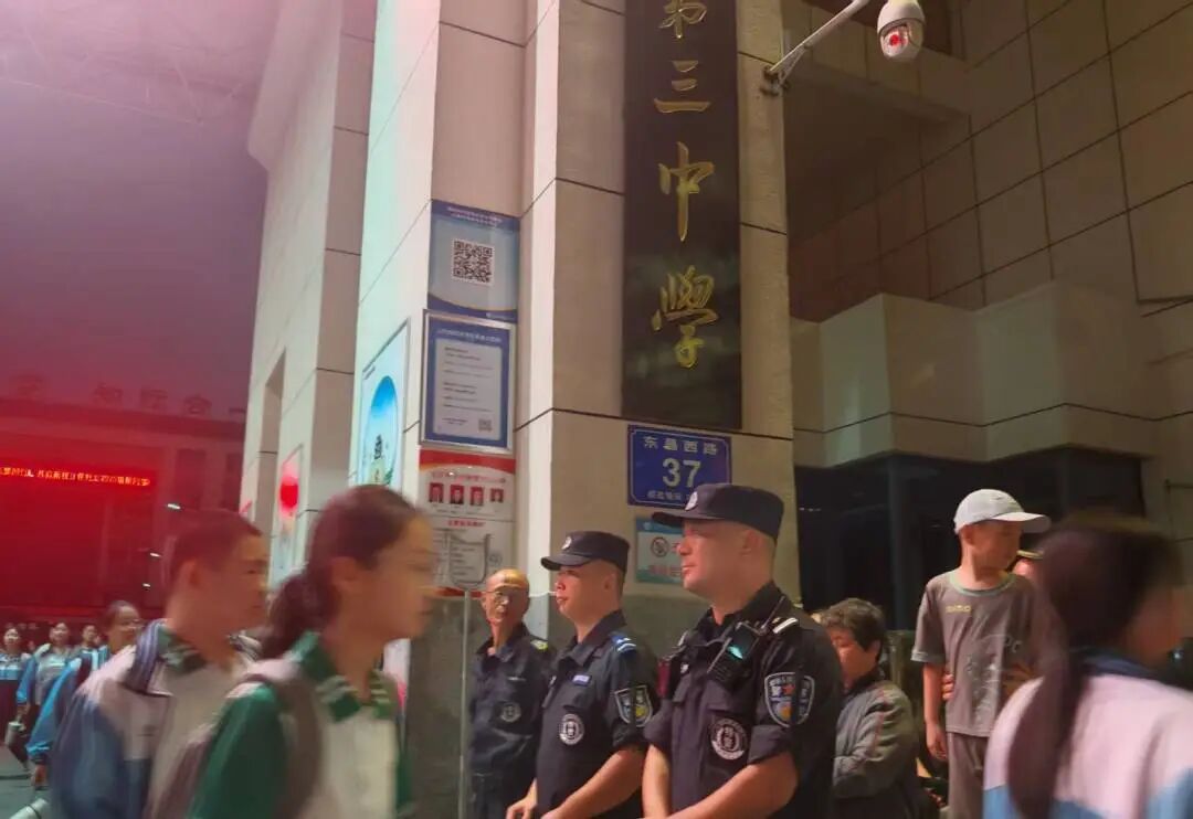 为保障学生上下学时段校门口秩序与安全,我校联合交警部门 “星空护学” 行动,学校值班教师、安保人员共同在校门口两侧道路值守,引导学生有序过马路、避开拥堵区域,提醒过往车辆减速慢行,同时协助疏导接送学生的车辆,避免交通堵塞。