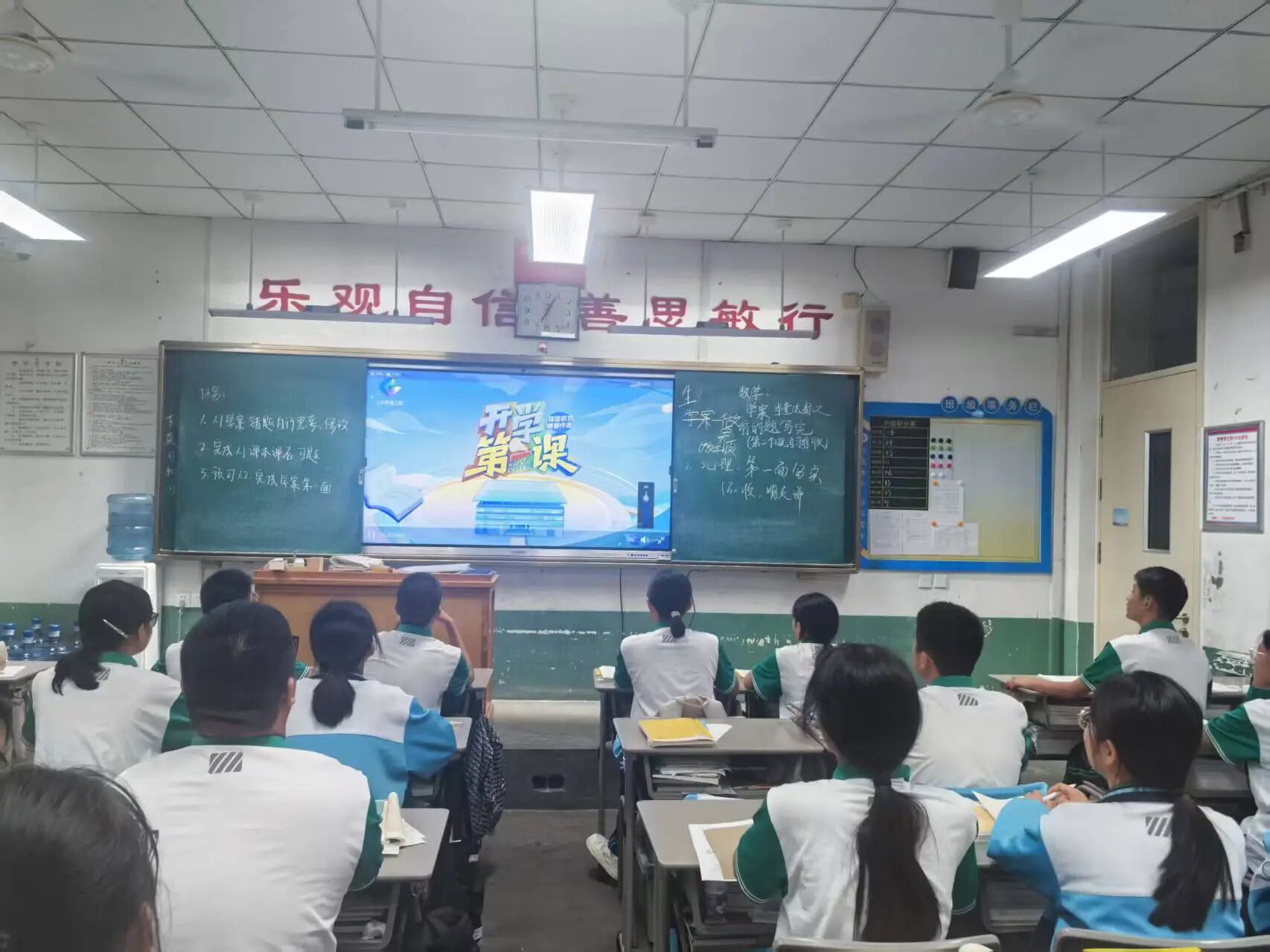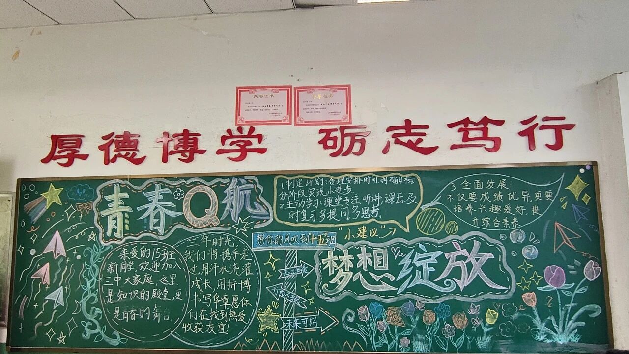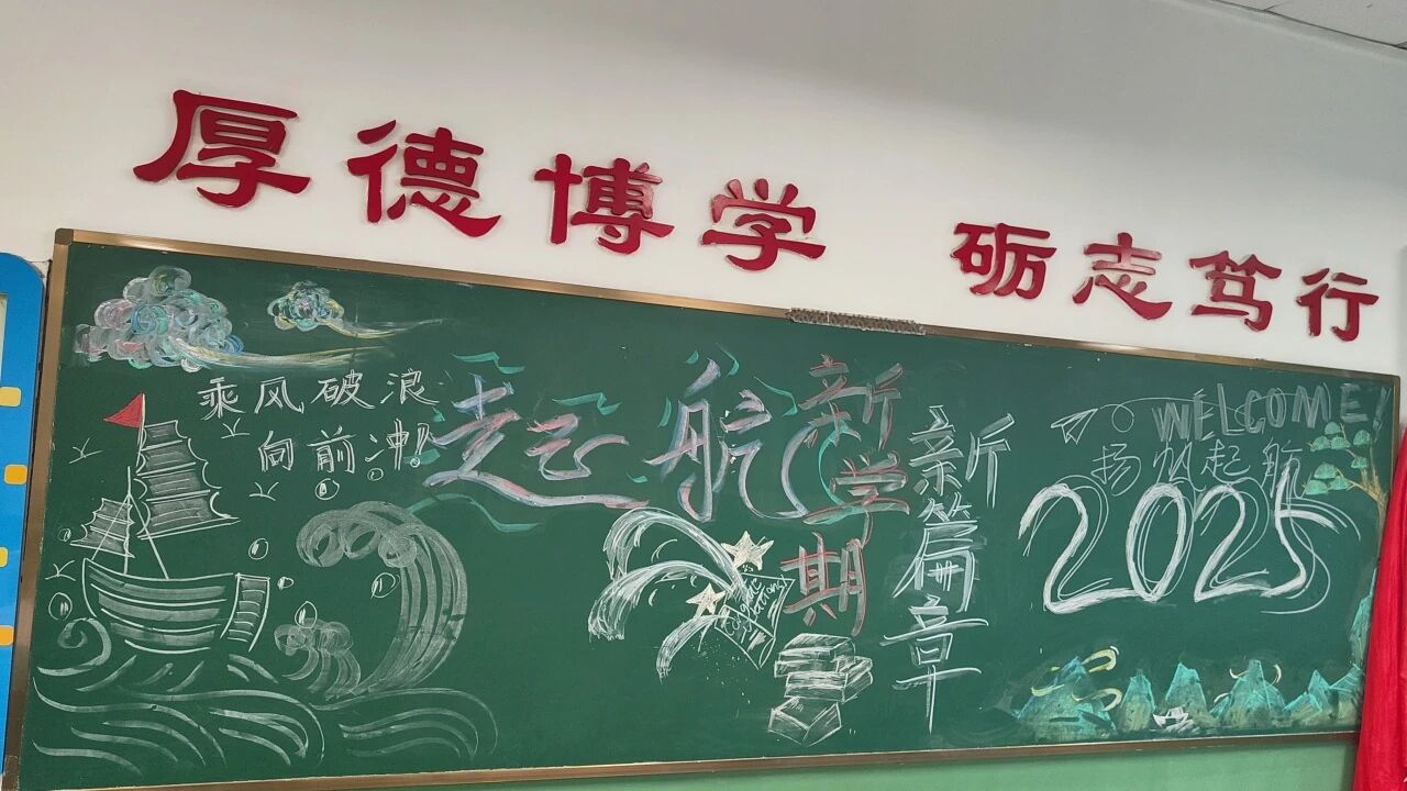 新学期新气象,各班级围绕 “开学第一课” 主题制作黑板报。