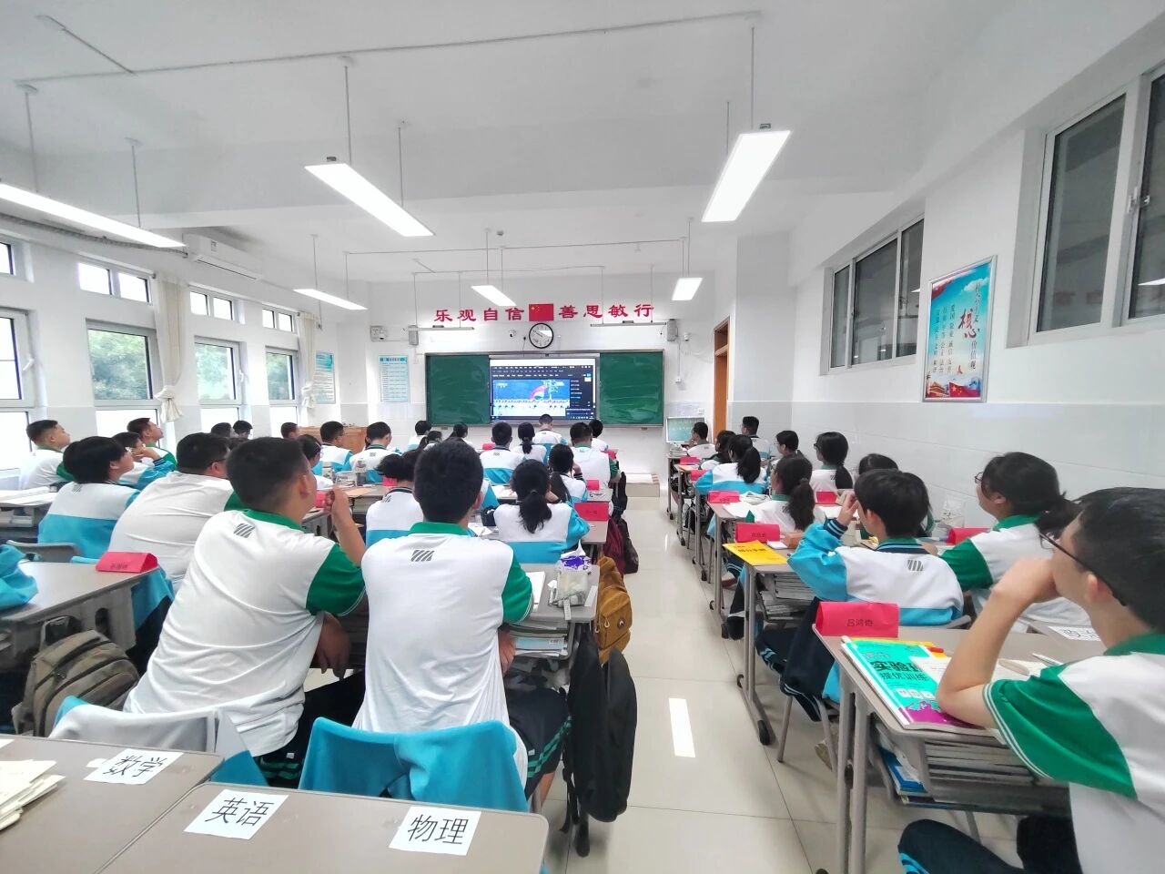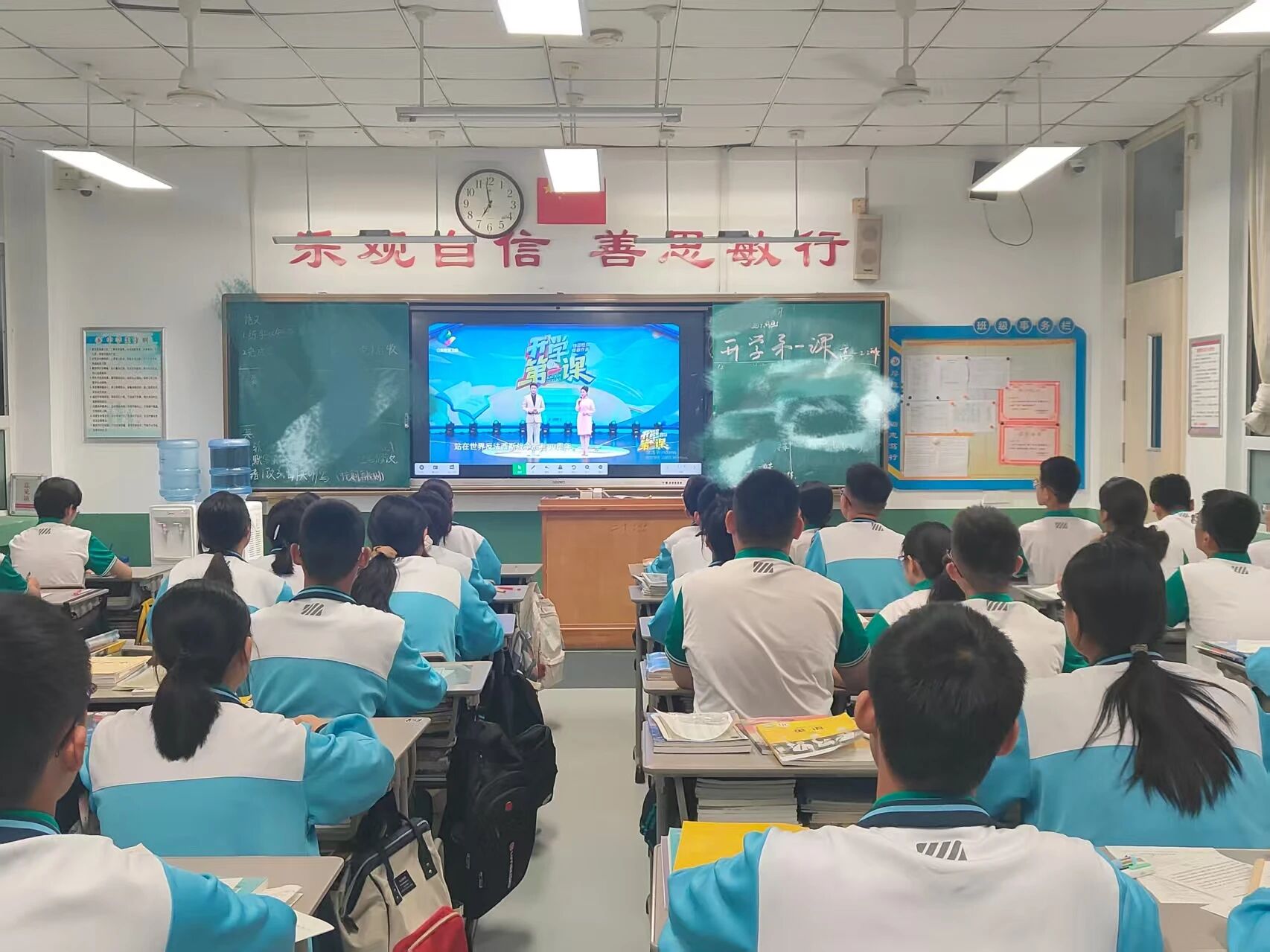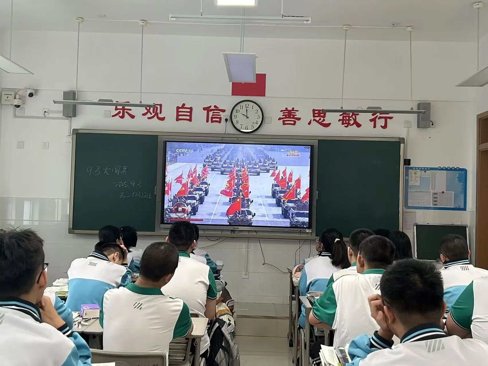 阅兵仪式直播结束后,班主任们都进行了总结,呼吁学子听理想指挥,打高考之仗,树优良学风。“把震撼收进行囊,把热泪化成汗珠。让我们用下一次月考的全力以赴,用每一次自习的聚精会神,用每一次跌倒后的咬牙站起,告诉世界:中国的未来,正在这间教室拔节生长!”