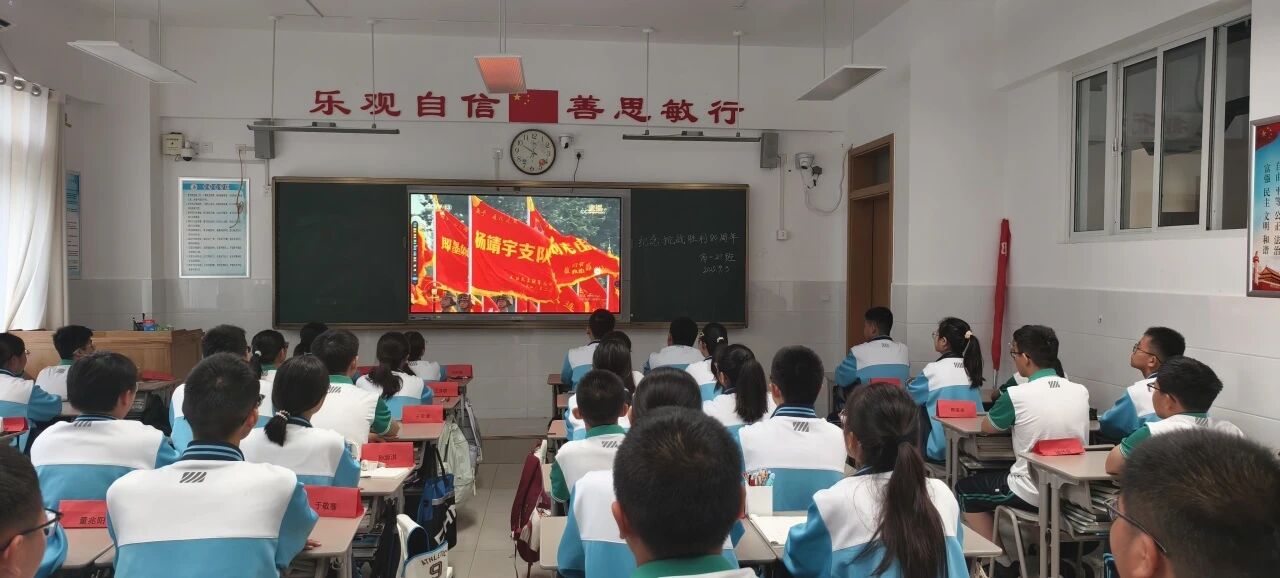 上午9:00,阅兵式正式开始,师生们在各自教室,通过大屏幕观看阅兵盛况 ,仔细聆听大会重要讲话。当看着整齐划一的人民军队、先进精良的武器装备依次通过天安门广场,大家的自豪感和爱国情油然而生。这次阅兵不仅是对为中国人民抗日战争作出贡献的英雄的致敬,更体现了伟大抗战精神的赓续传承。