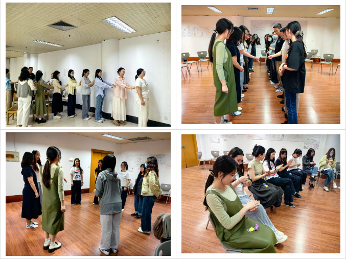 刘绍立和刘燕向老师们介绍了几种进行自我关照的方法,并带领老师们进行体验。