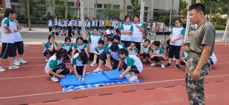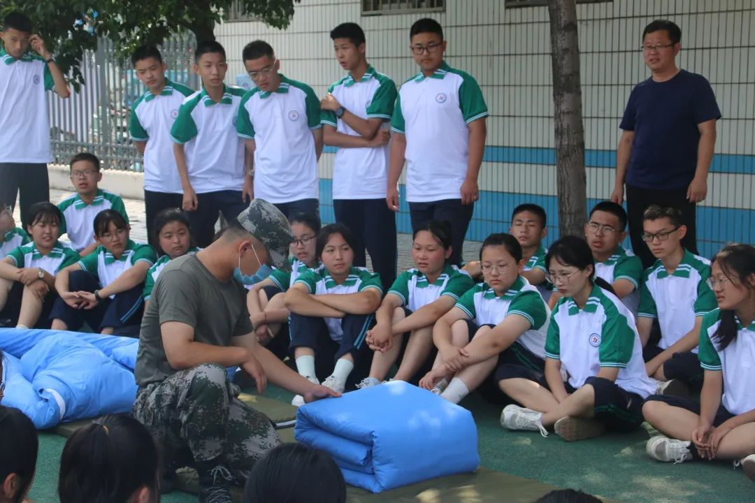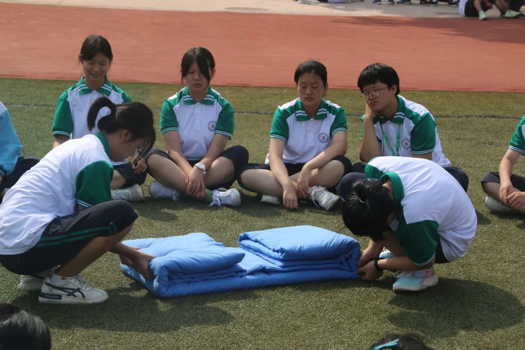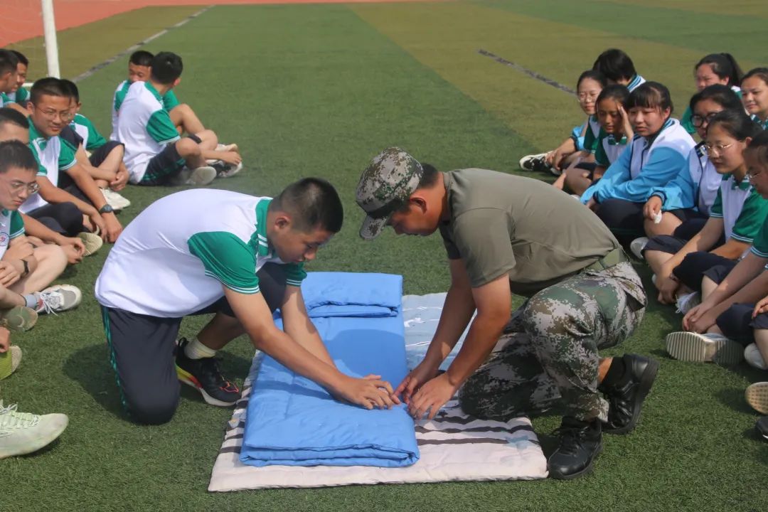 当然,军训怎么能没有内务整理呢?你看,教官们搬出了被子和垫子,开始给萌新们展示叠被子这一“神功”。不多一会儿,一个有棱有角的标准军被就在教官手里出炉啦。教官们边展示边细致的讲解,“叠被子看似简单,但叠起来非常累,叠完往往会出一身汗”。同学们跃跃欲试,齐心协力,共同参战!看着最后的成果,萌新们也发出了激动地欢呼声。