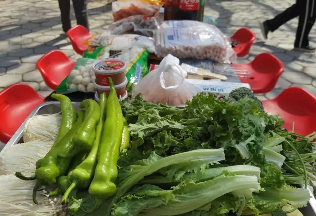 采购了食材,接下来就是动手烧烤的环节。做好安全工作,清出安全范围,食材分装好,烤架支起来,接下来就要看“主厨”与“副手”们配合程度喽!