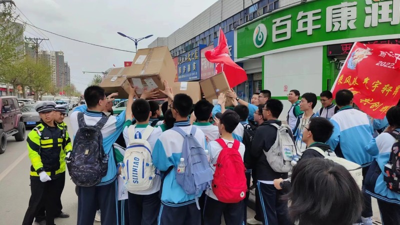 同学们的安全出行离不开聊城市交警支队直属一大队、二大队人员的周密安排和护送,两个大队全力以赴,提前介入,安排随行铁骑全程保驾护航,护卫同学们安全、有序地通过每一个路口,全面确保学生的交通安全。