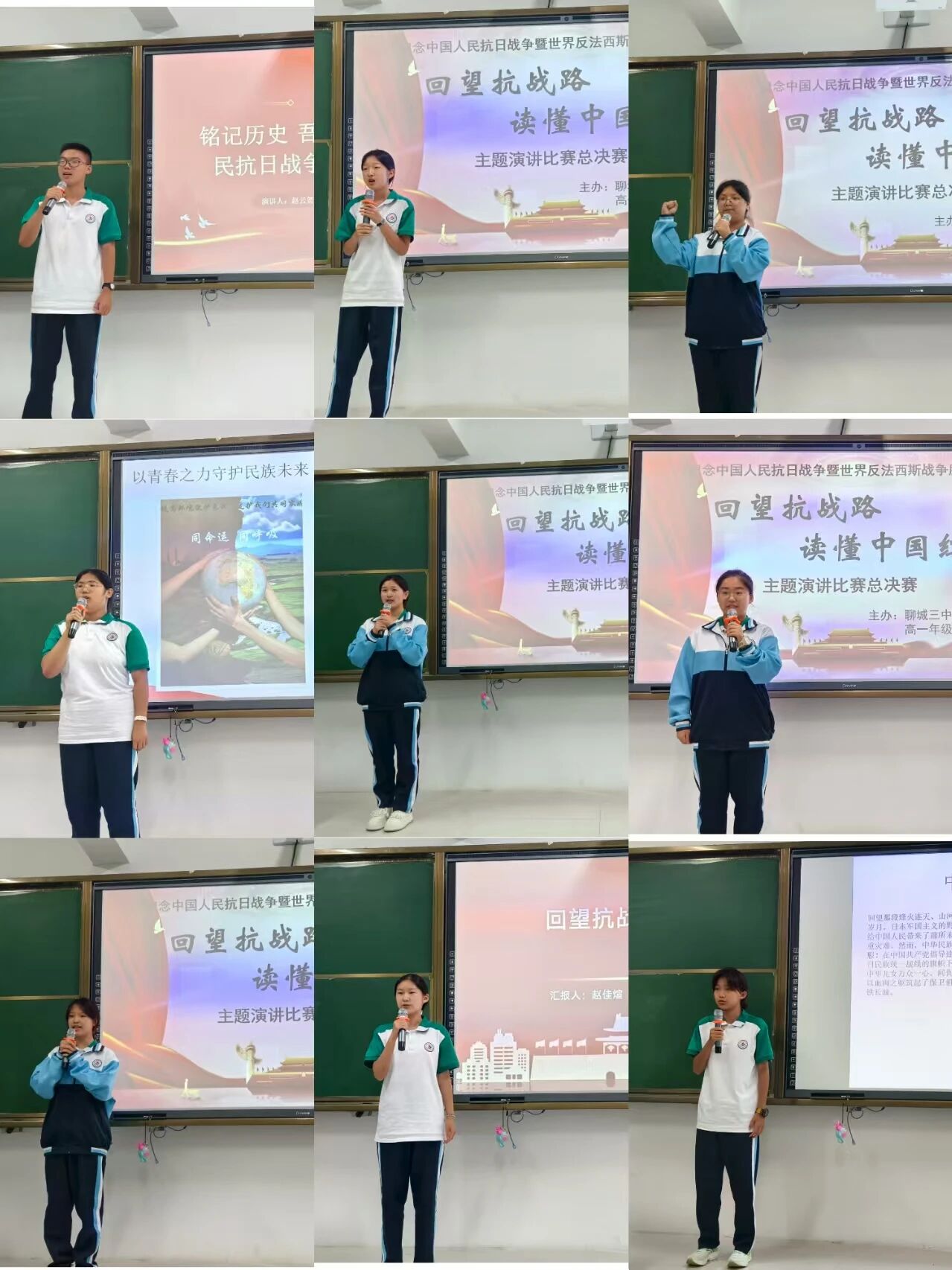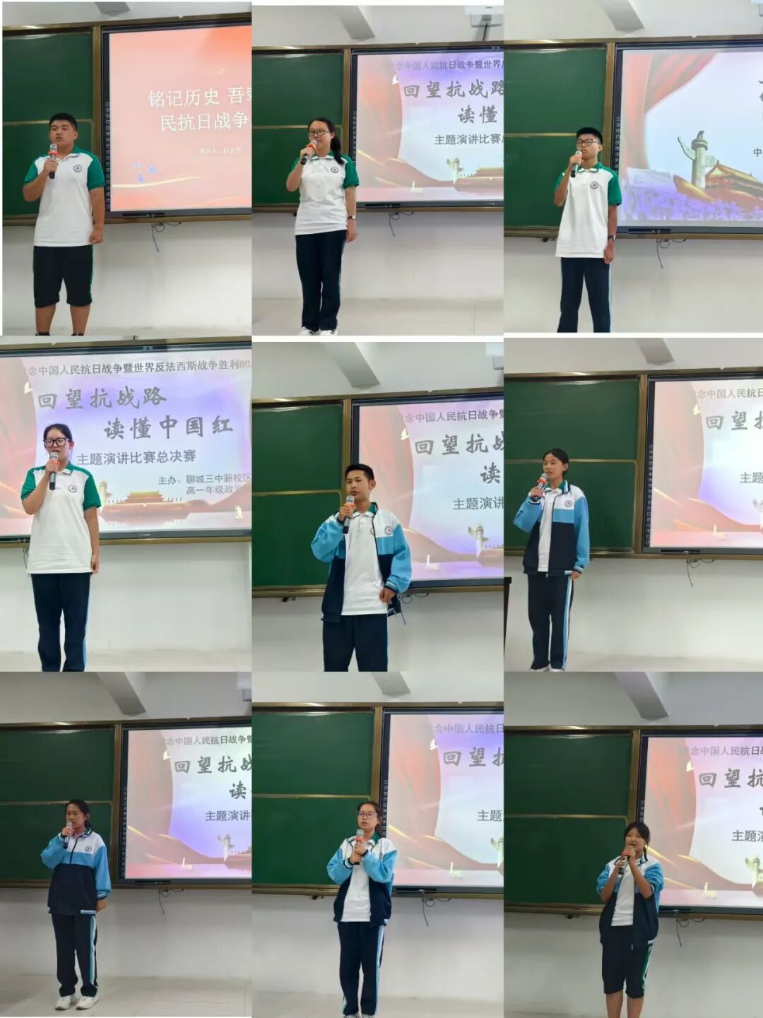 比赛中,同学们围绕主题,以饱满的热情、生动的语言和详实的史料,讲述了“踏雪寻梅处,自有党旗扬——赵健民千里寻党”“忠魂不朽传薪火 ,使命如磐启新程”等聊城本土涌现的红色故事。他们或慷慨激昂,或深情倾诉,展现了抗日英烈们的英勇事迹和不朽的抗战精神,赢得了现场评委和观众的阵阵掌声。