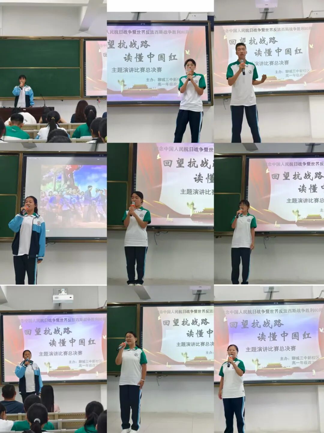为纪念中国人民抗日战争胜利80周年,9月3日晚,聊城三中新校区高一年级政治组举办了“回望抗战路,读懂中国红”主题演讲比赛。本次活动由教学教研中心主任袁晓丽担任特邀评委,高一年级全体政治教师参与评审。