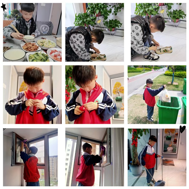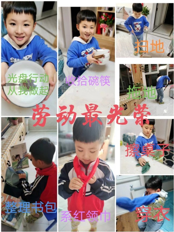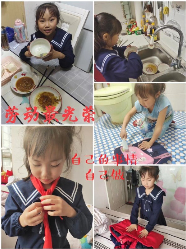 一二年级小队员们通过学系红领巾、参与光盘行动、收拾自己的“小天地”、做力所能及的家务等活动感受劳动带来的快乐!