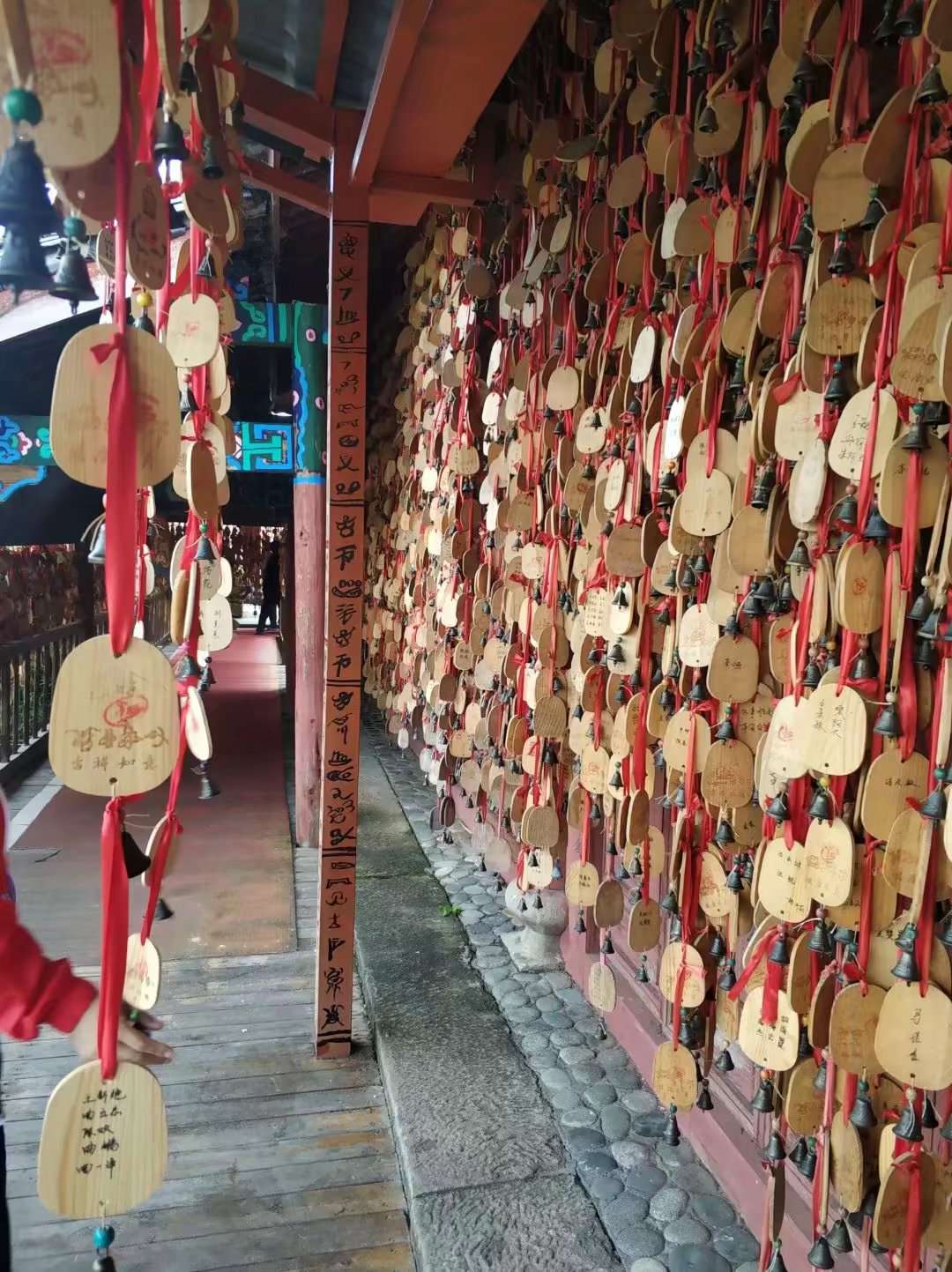 骑马之前,买了雨披,手套和过膝鞋套。到我们上马了,一个牵马人牵着前后相连的三匹马,她扶每个人上马,并帮忙踩好马蹬,双手抓住前面的马鞍把手。开始上路了,老马稳稳地走着,即使泥泞的路,老马依旧不急不徐地踩好每一步,到上山时,牵人说身子往前趴,双手抓好把手,下山时,又告诉身子要使劲往后仰。到了山上最窄的路只有一尺多宽,左边是深不见底的悬崖 ,右边是庄稼、树木,我双手紧握马鞍子的把手,生怕马失前蹄,把我从马背上甩落下来。牵马人说她们一天能跑七八个来回,一趟有三公里左右。