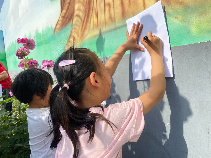 为丰富幼儿的想象力,激发热爱大自然的美好感情,2023年5月15日,顾官屯镇前王幼儿园以“树荫下的童年”为主题开展了户外树影画的活动。